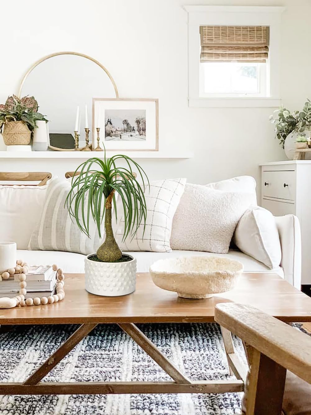- 🌿✨【Realistic Artificial Ponytail Palm Plants】The fake potted plants look very natural and realistic with its smooth, soft leaves and vibrant green color. The faux plants leaves are made of high-quality PU. They look as close to reality delicate design, artificial plants allowing you to feel the presence of nature.