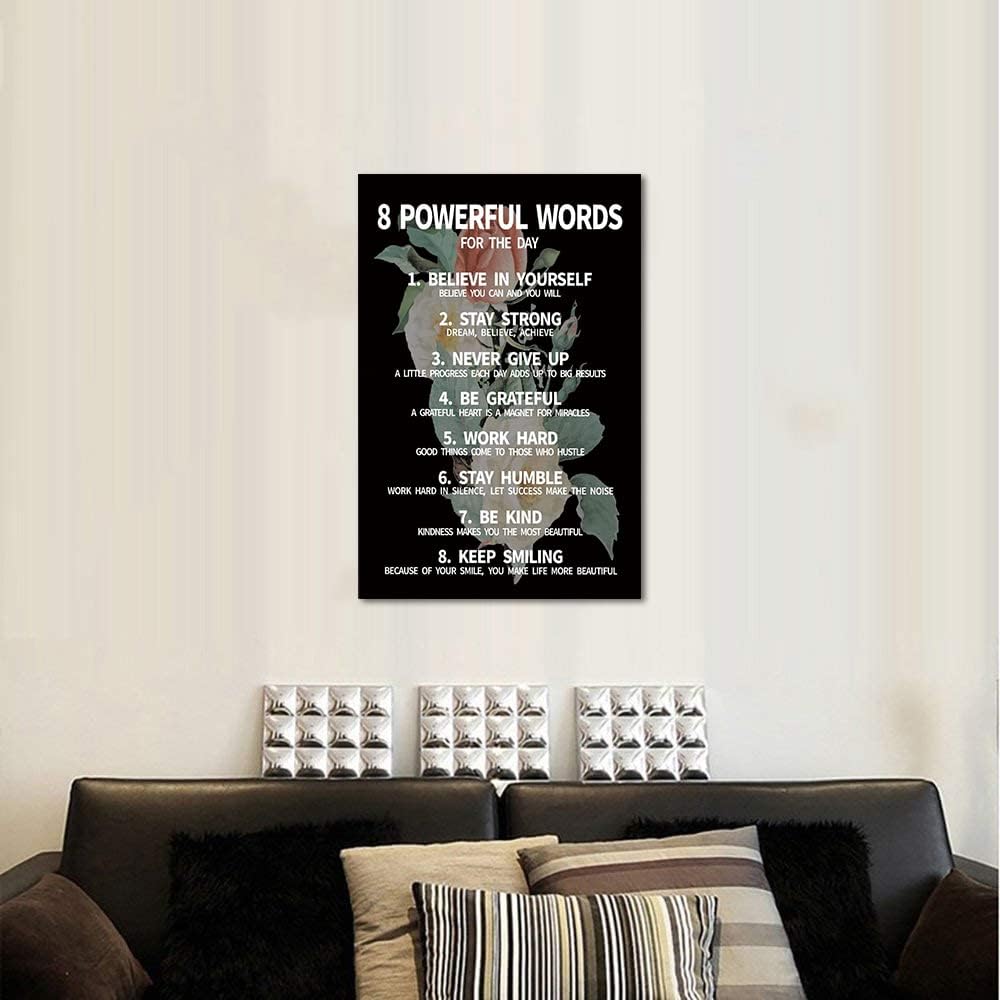 Inspirational Office Quotes Sayings - 8 Powerful Words for The Day Canvas Decoration Paintings with Flower Background Suitable for Office School Library Home Wall Hangings HD Print-24 inch x 36 inch