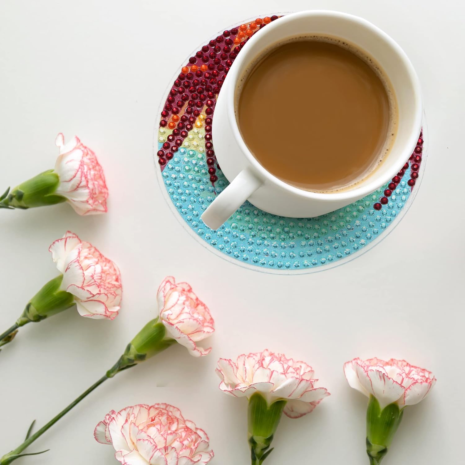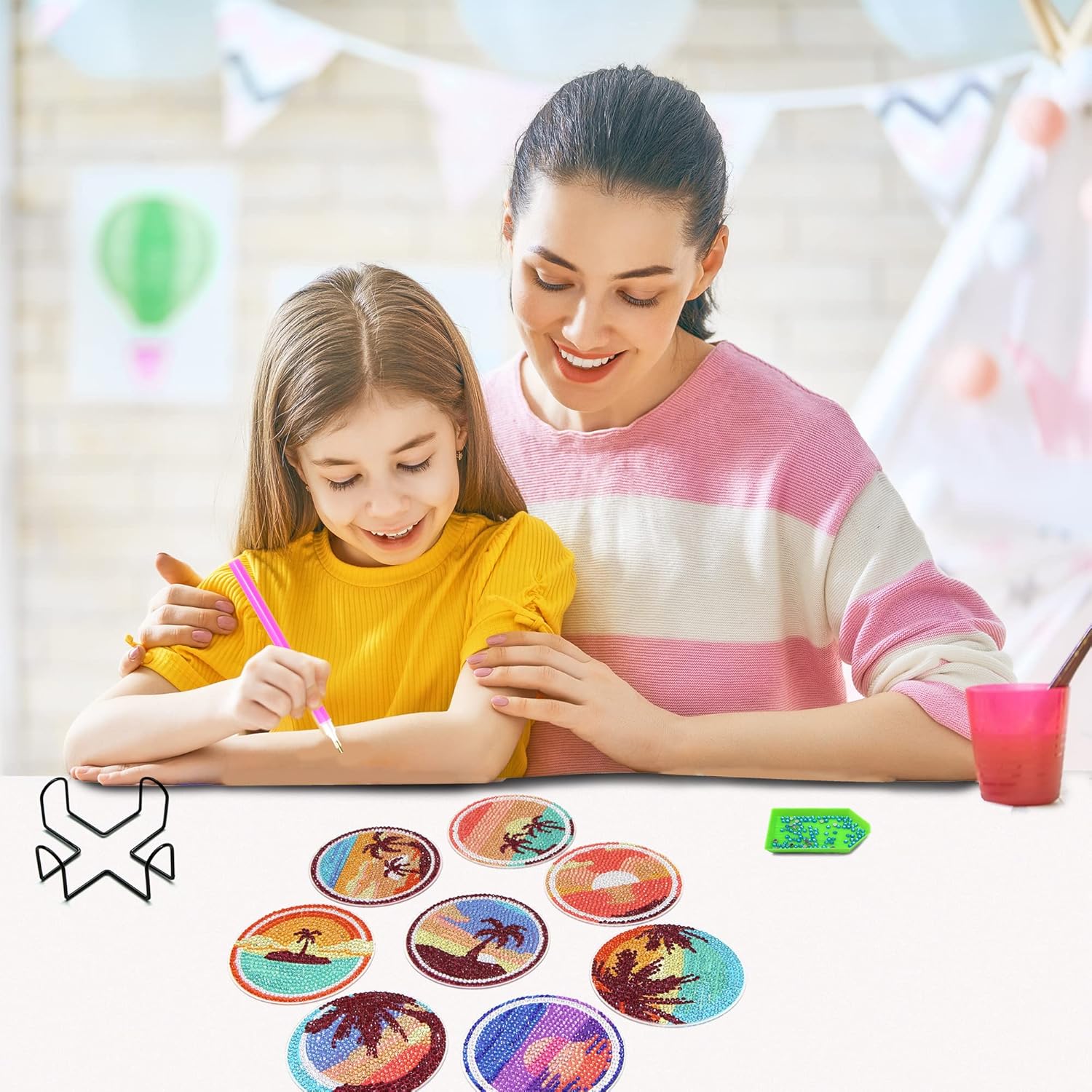 - 【NEWLY UPGRADED KIT】The newly upgraded DIY diamond art coaster set contains resin diamonds in multiple colors, 8*coasters, 8*cork pads,, 1*coaster holder, 2*pens, 2*wax, 2*tray.