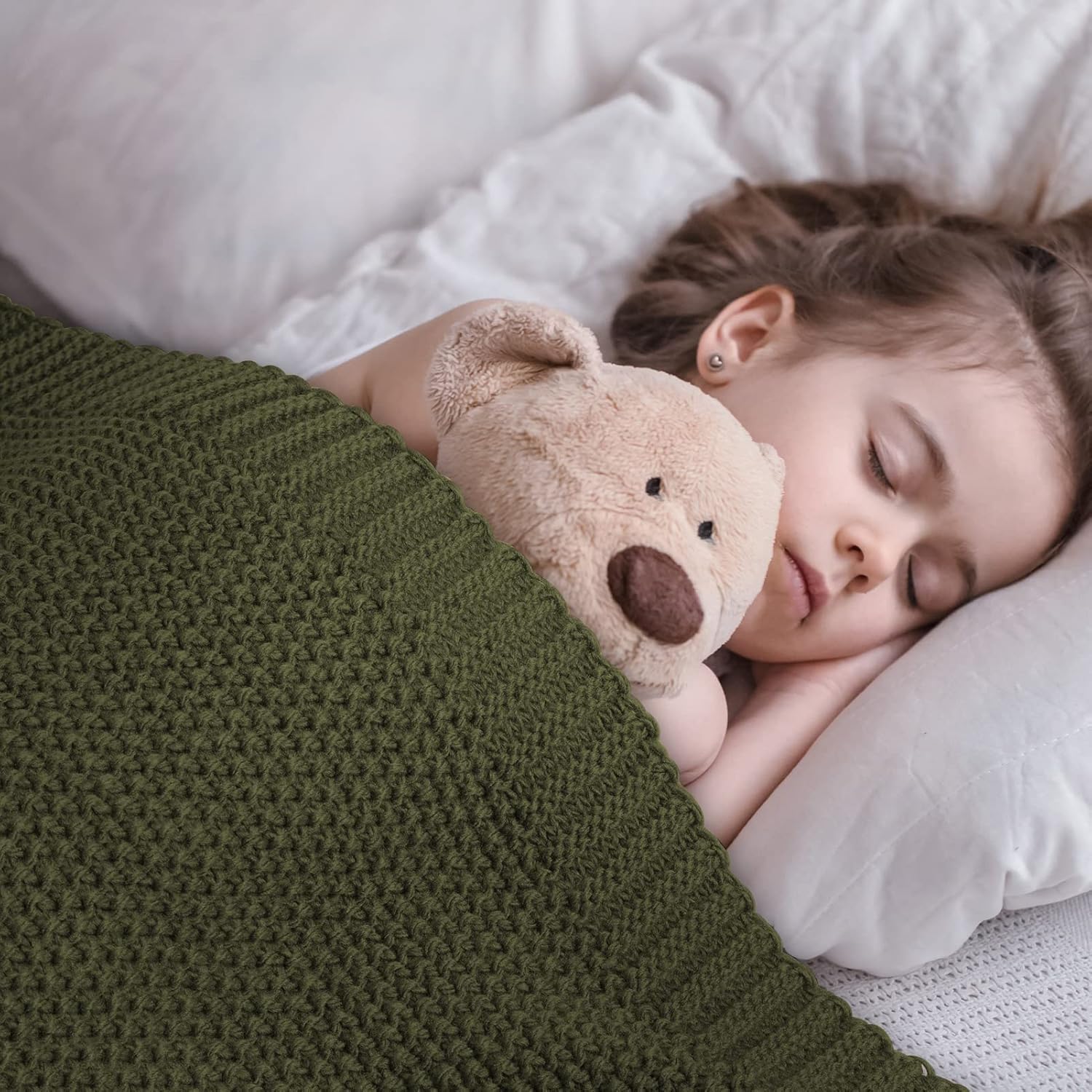 CozeCube Olive Green Throw Blanket for Couch, Soft Cozy Cable Knit Throw for Bed Sofa Living Room, Lightweight Warm Decorative Farmhouse Christmas Blanket, 60"x80", Olive Green