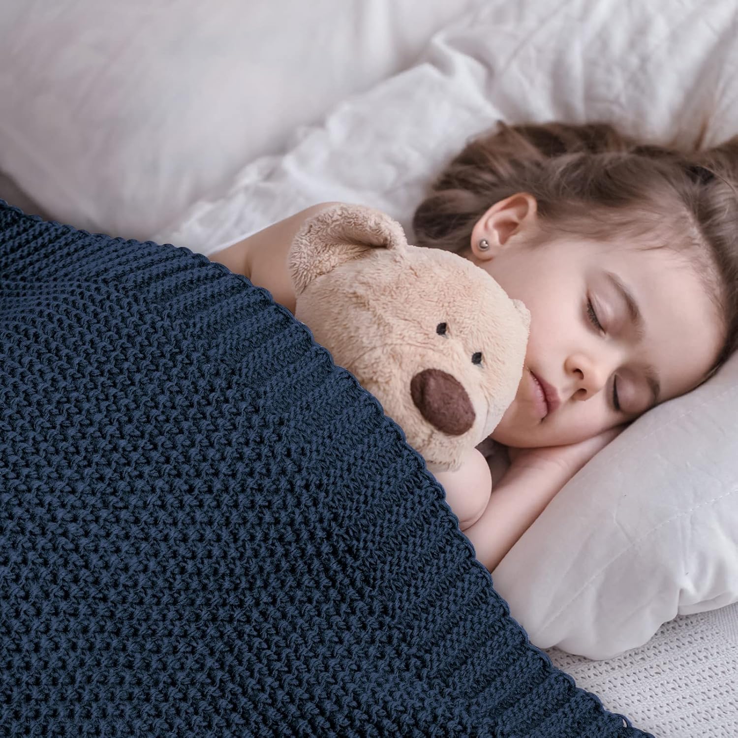CozeCube Navy Blue Throw Blanket for Couch, Soft Cozy Cable Knit Throw for Bed Sofa Living Room, Lightweight Warm Decorative Farmhouse Christmas Blanket, 50"x60", Navy Blue