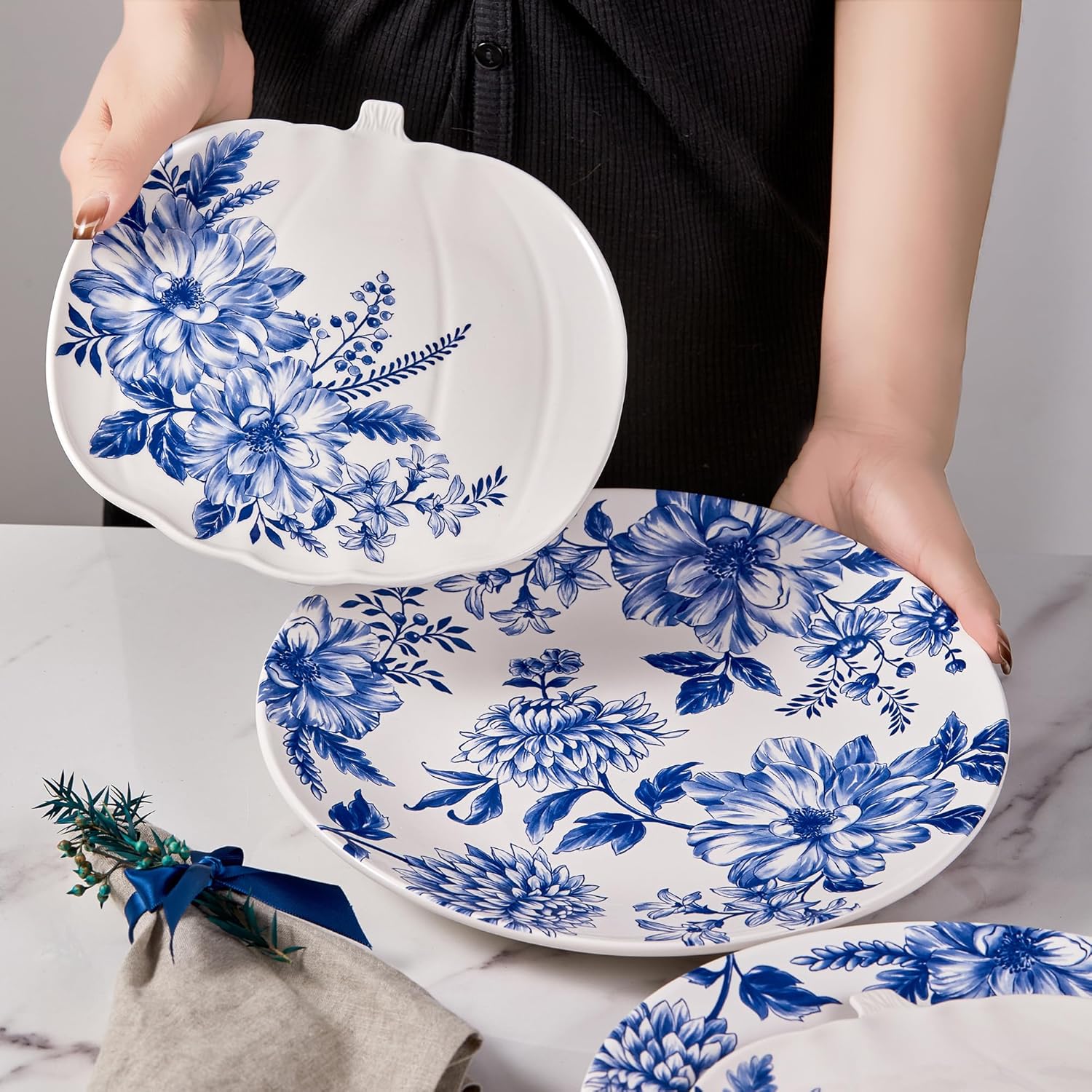 Bico Blue Floral Haven Dinner Plates Set of 4, 11 Inch Large Ceramic Plates for Pasta, Steak, Stylish Serving Dishes, Microwave and Dishwasher Safe, Gift for Housewarming and Thanksgiving