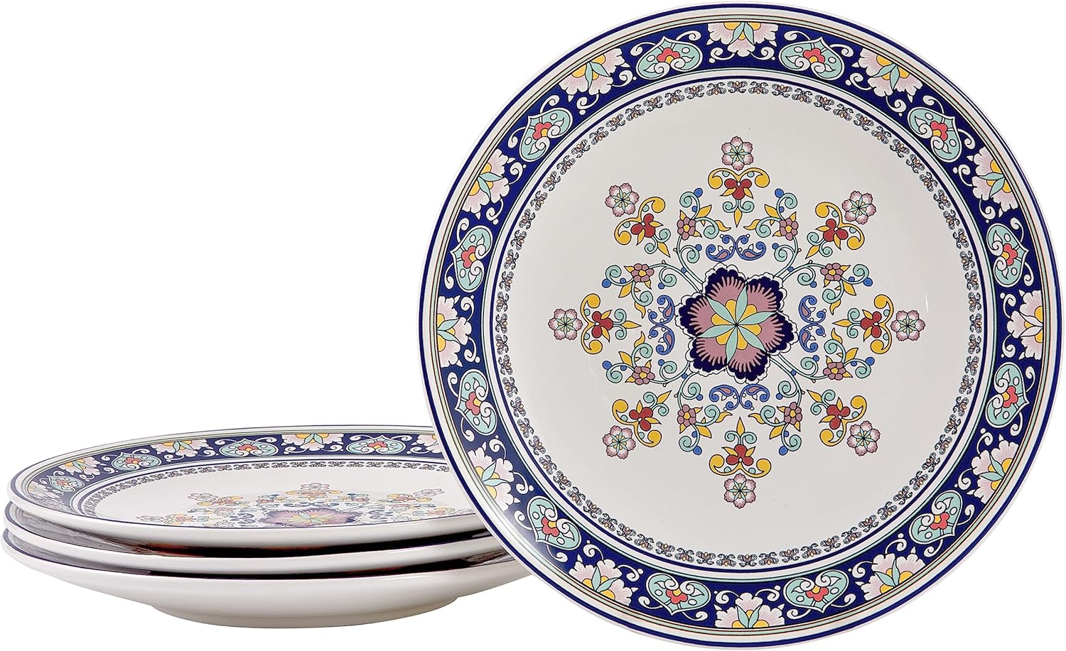 Bico Mandala Kaleidoscope Dinner Plates Set of 4, 11 Inch Large Ceramic Plates for Pasta, Steak, Stylish Serving Dishes, Microwave and Dishwasher Safe, Gift for Housewarming and Thanksgiving
