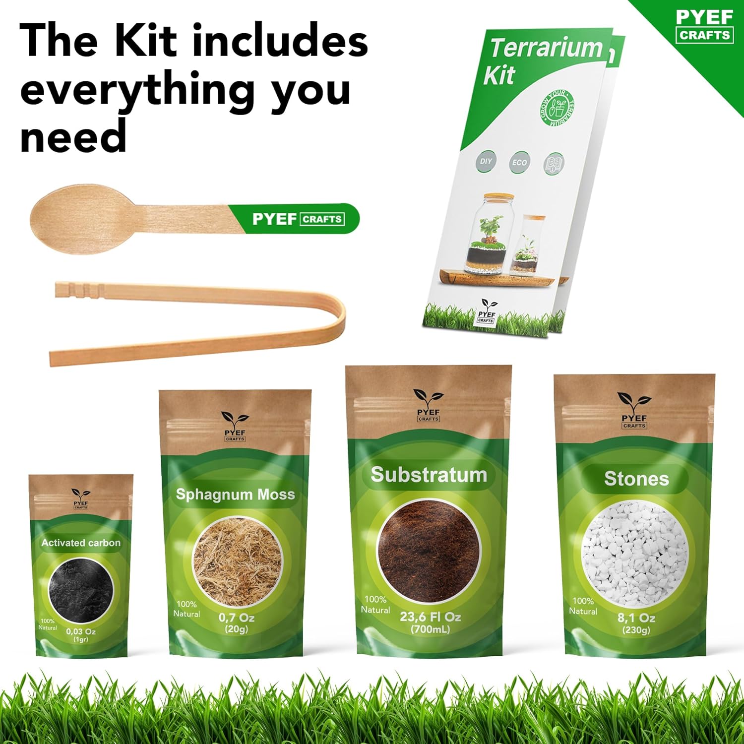 - Customizable: Build your own terrarium for the plants. The DIY terrarium kit allows users to customize their design and style to create their own self‑sustaining ecosystem. It includes a variety of terrarium soil, terrarium moss, activated charcoal and other decorative elements so that users can create a unique and personalized design—ideal for Fittonia, Bromeliads or compact ferns. It doesn't include the plants!