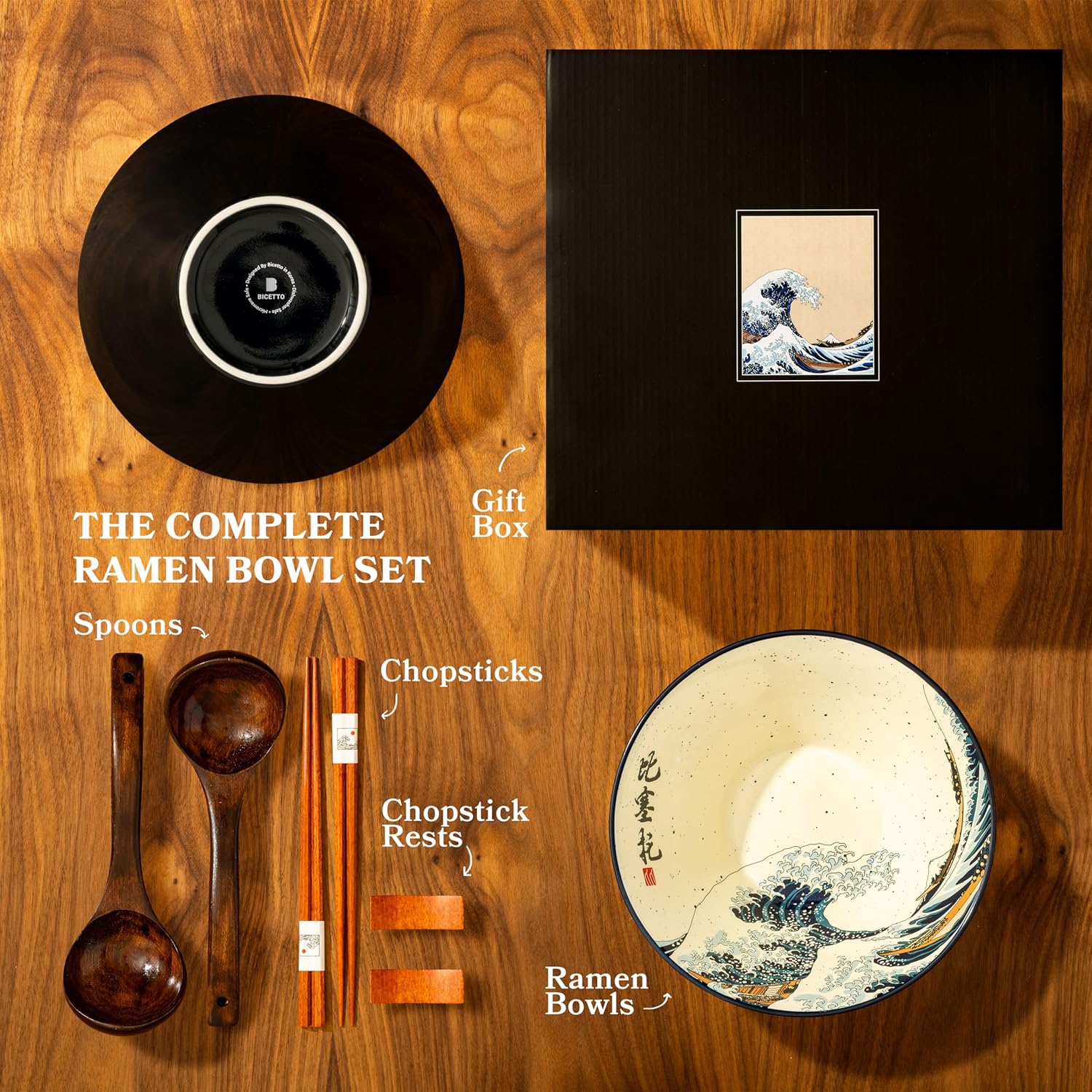 - π THE ULTIMATE GIFT FOR RAMEN AFICIONADOS: The Ultimate Gift for Ramen Aficionados: Delight the ramen lovers in your life with the BICETTO ramen bowl set. This thoughtful and distinctive gift is perfect for any occasion, from birthdays to holidays, or as a warm welcome to a new home. Share the joy of culinary indulgence with those you cherish.
