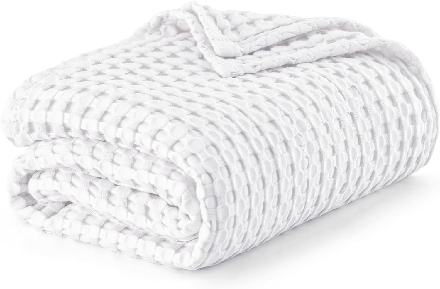 Bedsure Cooling Cotton Waffle King Size Blanket - Lightweight Breathable Summer Blanket of Rayon Derived from Bamboo for Hot Sleepers, Luxury Throws for Bed, Couch and Sofa, White, 104x90 Inches