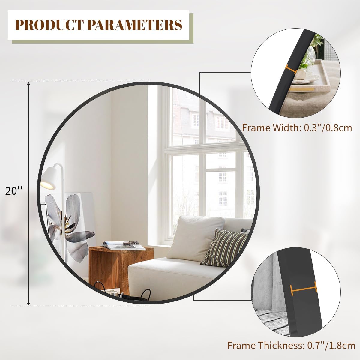 - Worry-free purchase: we have reinforced the packaging of the mirror to ensure safe delivery. If you find that the round mirror is broken on arrival, please contact us, we will deal with it for you at the first time