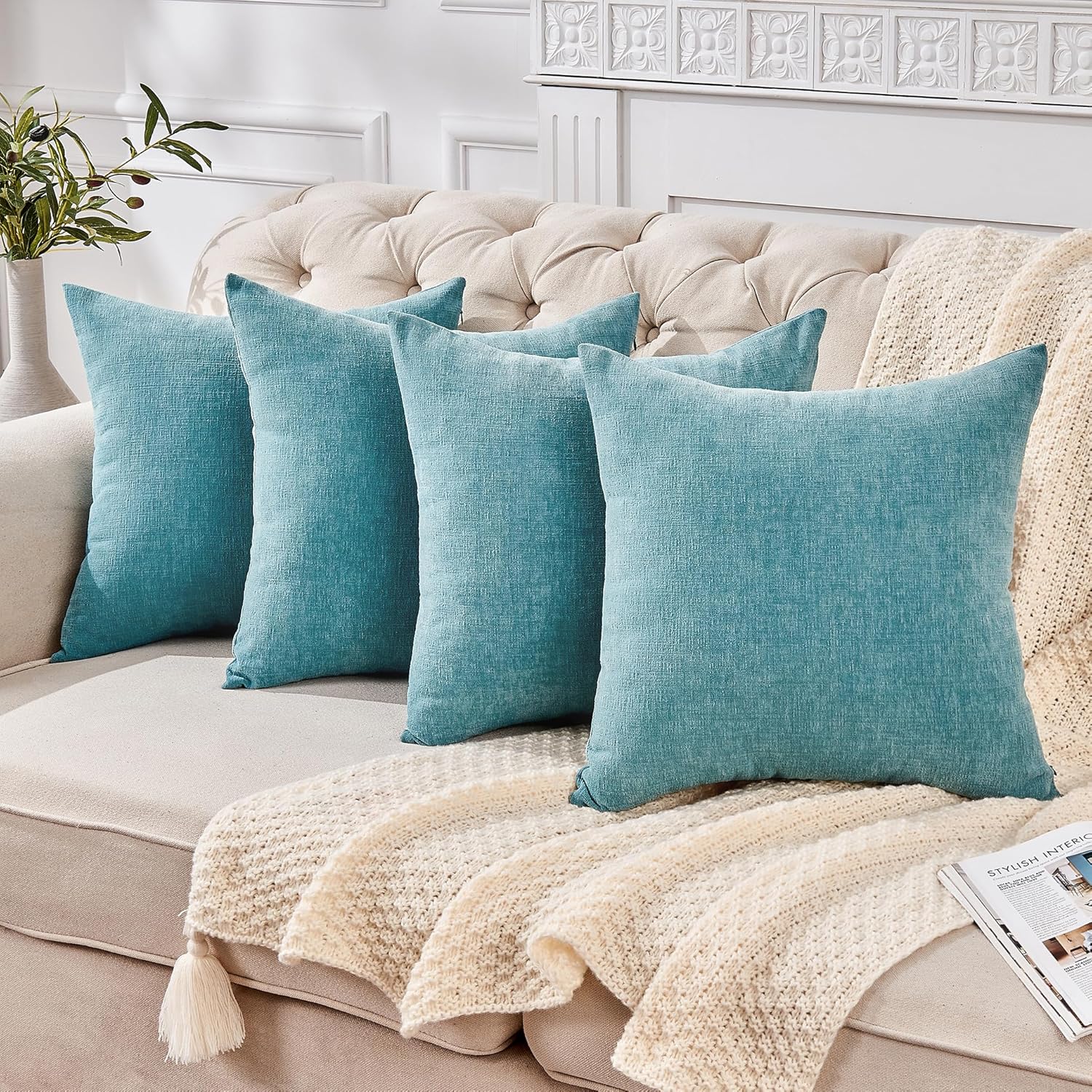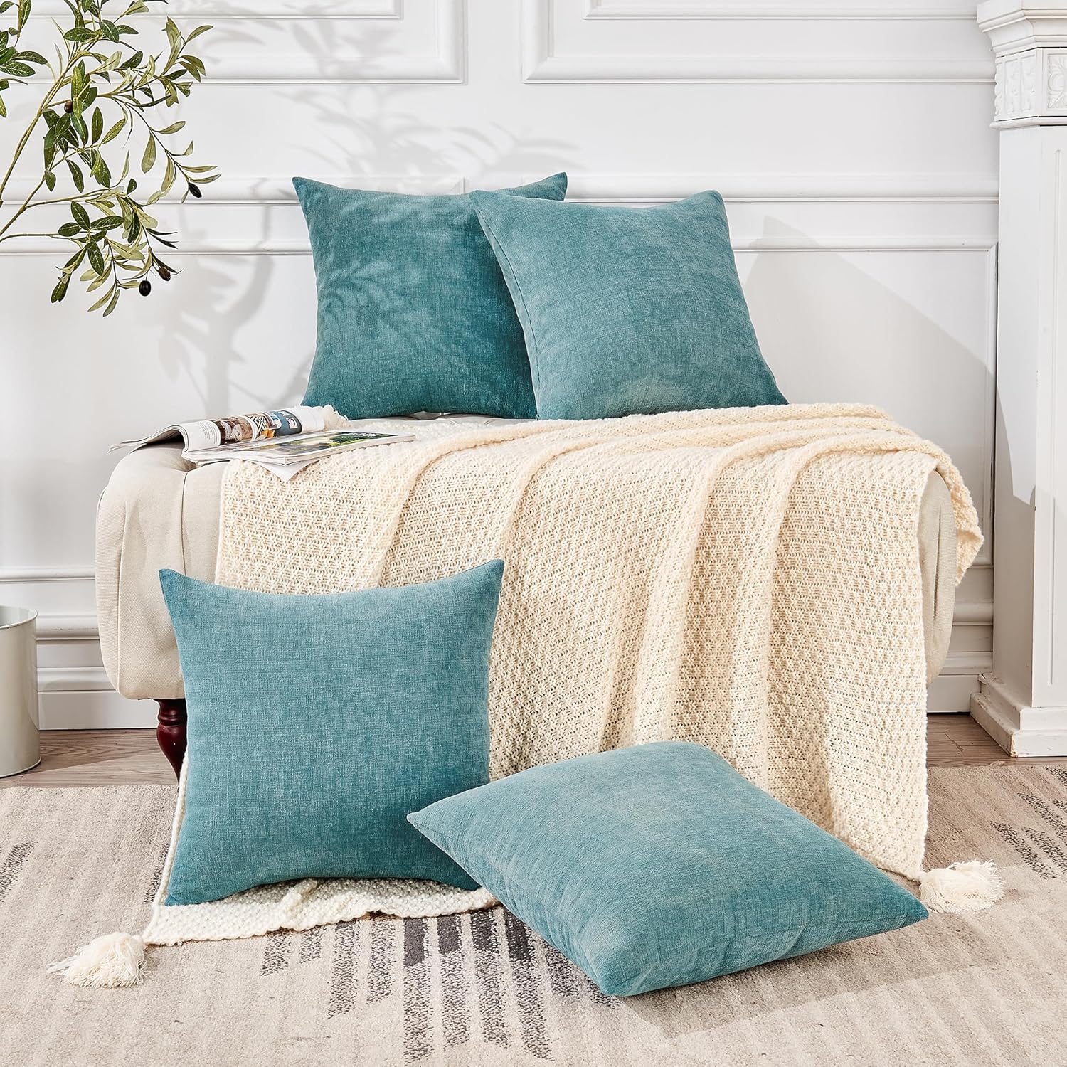 GAWAMAY Decorative Square Throw Pillow Covers 18"x18" Inch Set of 4, Super Soft Chenille Pillows Farmhouse Fall Pillowcase for Living Room Bedroom Sofa Couch Cushion Cover Smoke Blue 45x45cm