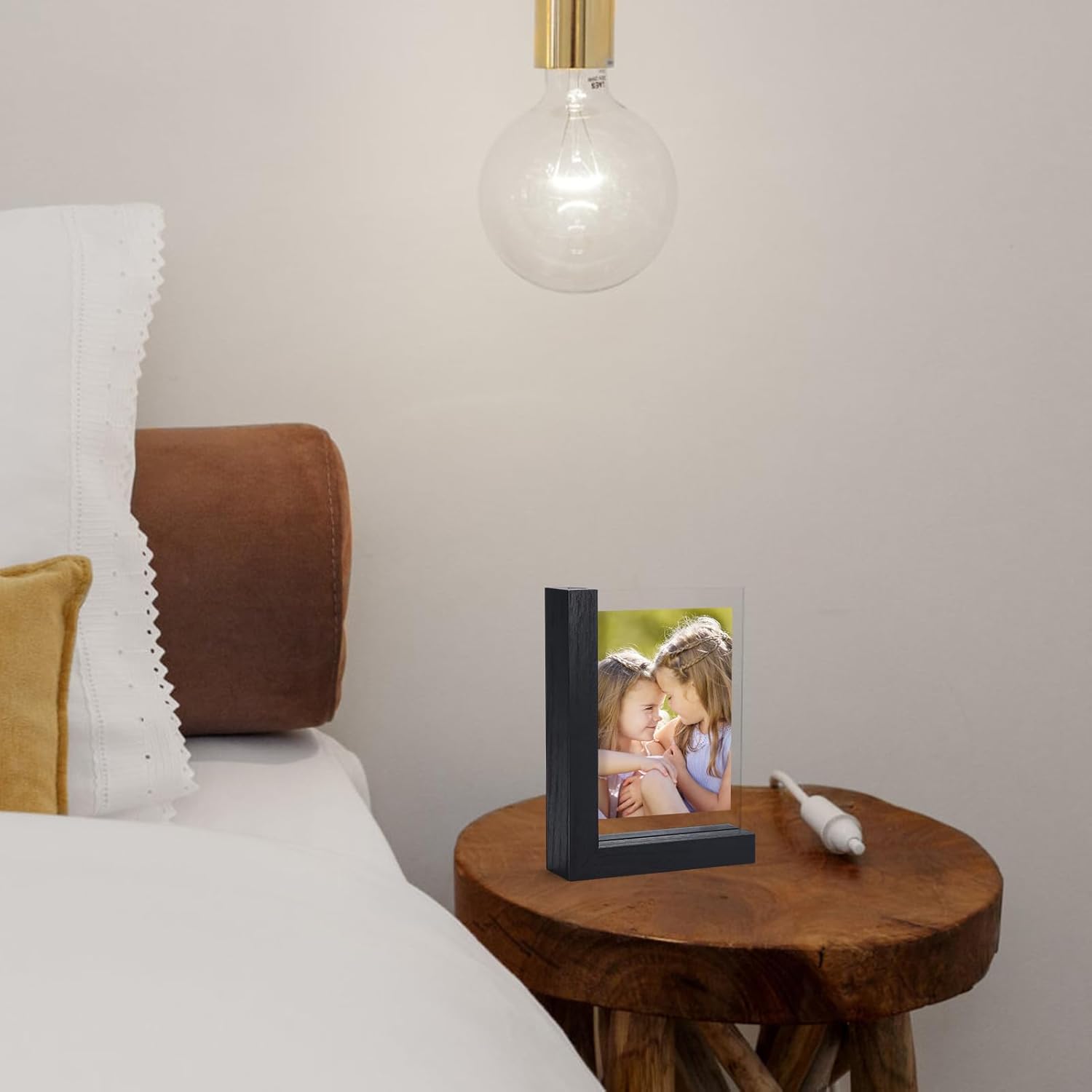 - Modern Elegance: Our L-shaped 4x6 picture frames feature a sleek black finish that adds a touch of sophistication to any setting. The frameless design seamlessly blends with various interior styles, from contemporary to classic.