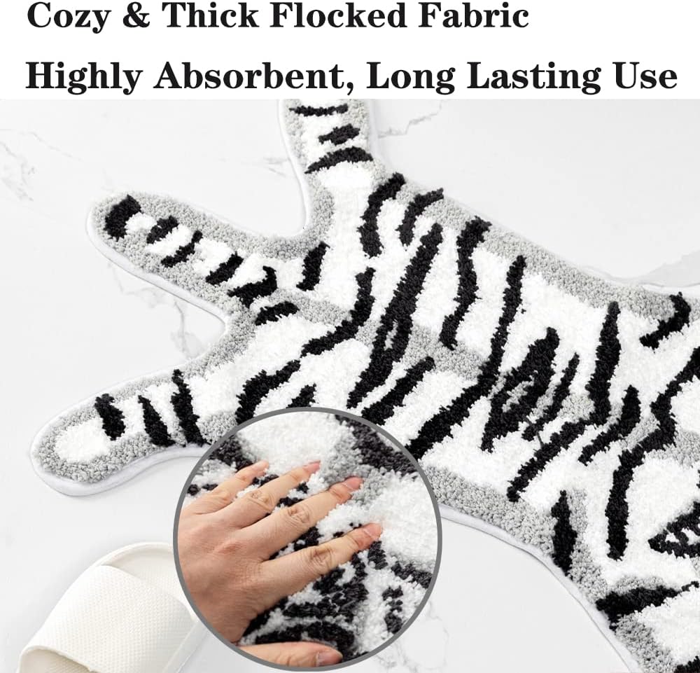 - High Quality: 33.1x 21.7inch Fun White Tiger Shaped Bathroom Decor Rug is made of Premium Microfiber Material, Soft Plush microfiber bath mat can Quickly Absorb Moisture, Keeps Feet Dry While Massaging the Feet, Bringing you a Pleasant Sense of Experience.