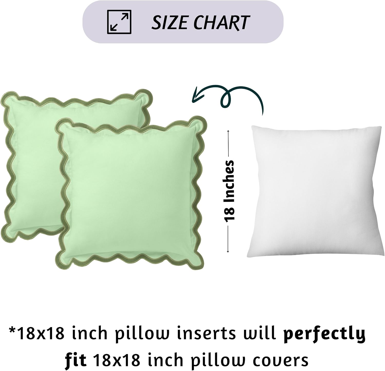 Folkulture Throw Pillow Covers | Set of 2 (18 x 18) Scalloped Pillow Cover | Decorative Pillows or Cute Outdoor Pillows | Boho Throw Pillows for Couch | Green Pillow Covers for Living Room