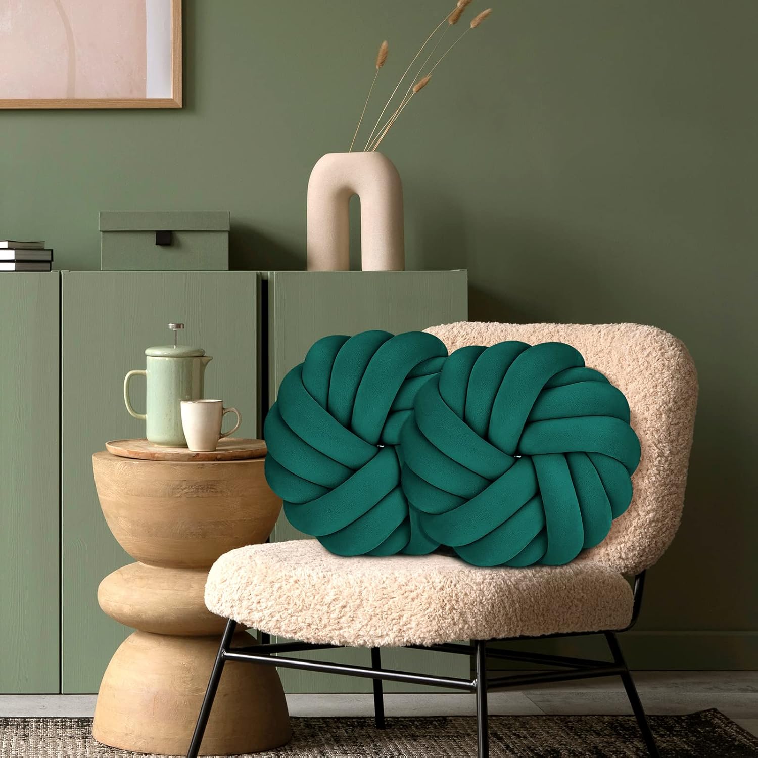 Fumete 2 Pcs 14 Inches Knot Pillow Round Throw Soft Plush Knot Ball Pillow Handmade Knotted Modern Home Decorative Cushion for Bed Bedroom, Sofa, Couch (Green)