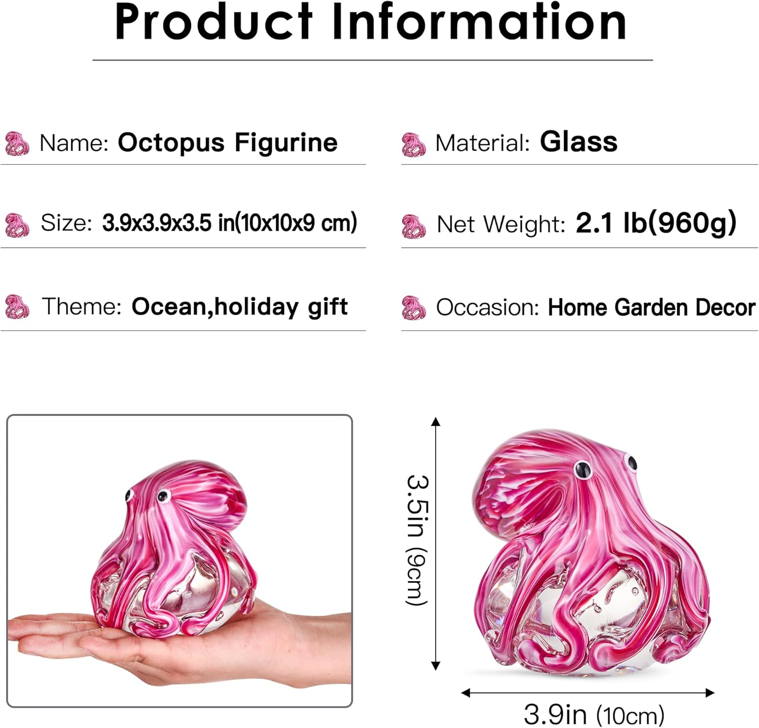 - Exquisite Design: Handcrafted by professional artisans, this Hand Blown Glass Octopus Figurine Ornament is a testament to quality, making it an exquisite addition to your sea animal collection or fish tank.