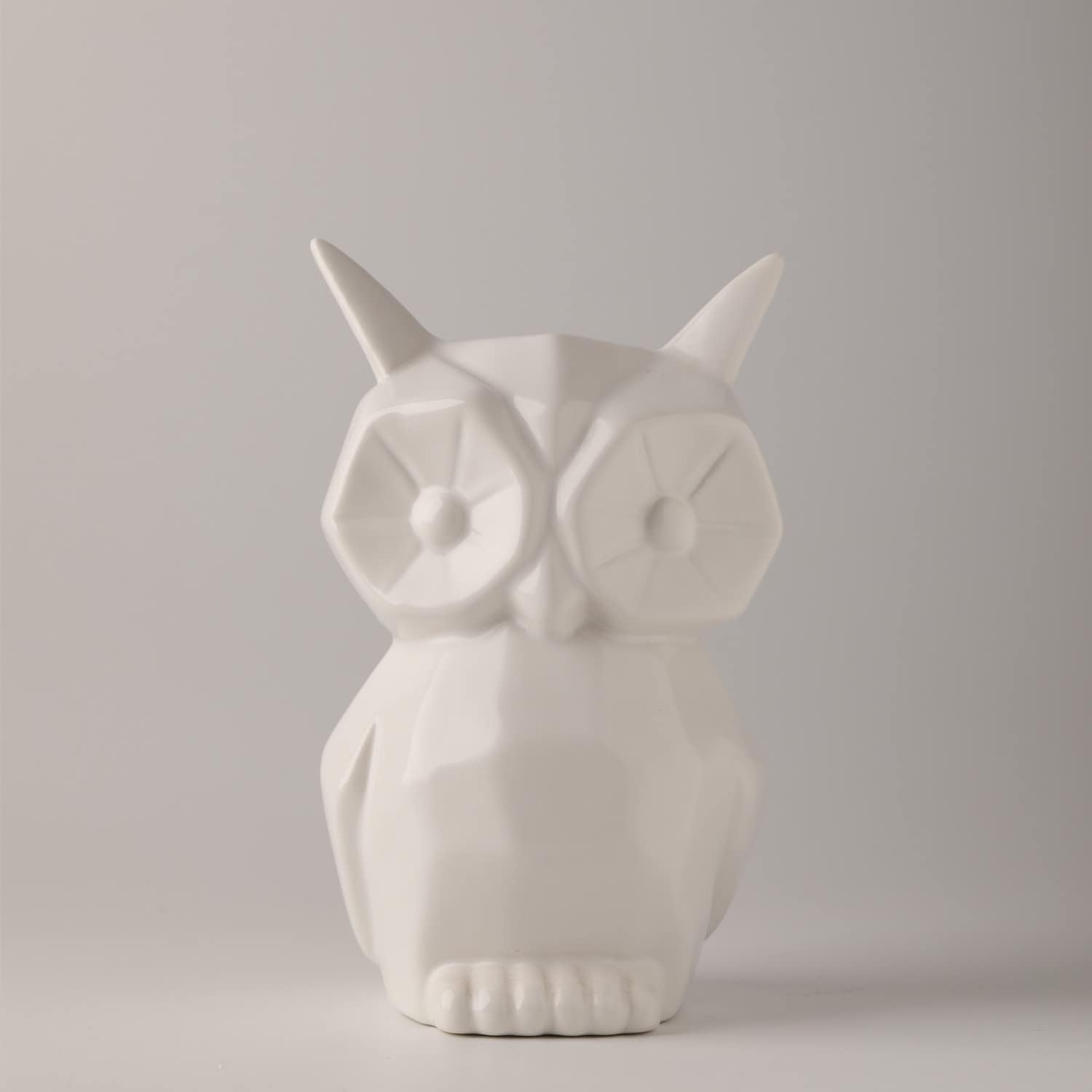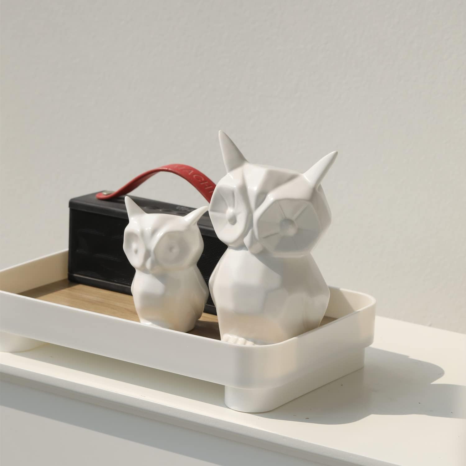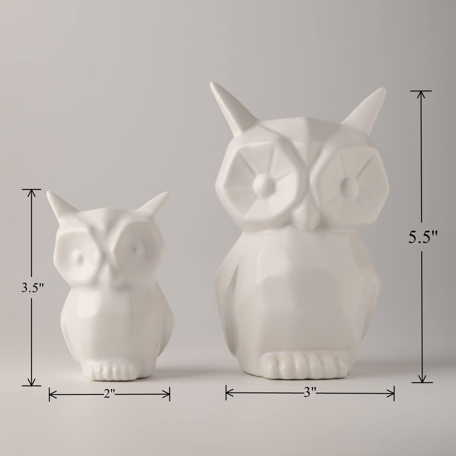 GOODSTART Glazed Ceramic Owl Statue for Home Decor - Modern Bird Figurine for Cabinet, Fireplace Mantel, Living Room, Bedroom - Ornaments and Gifts for Owl Lovers (White)