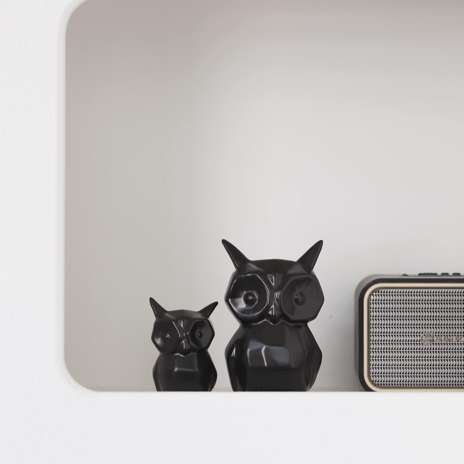 GOODSTART Owl Statue for Home Decor Glazed Ceramic Owl Figurine Modern Bird Figurine Owl Statue for Cabinet Fireplace Mantel Living Room Bedroom Ornaments, Owl Gifts for Owl Lover (Black)