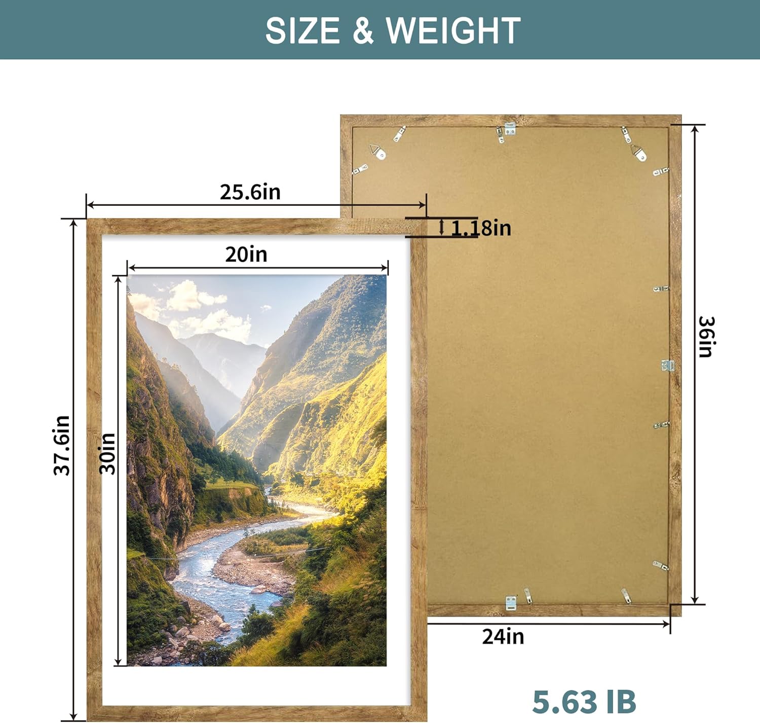 - Double Frames Set: Includes 2 frames in the same size. Perfectly fits 20x30 inch pictures with mat or 24x36 inch without mat. The frame opening display size is 0.5 inches smaller than the photo size for secure mounting.