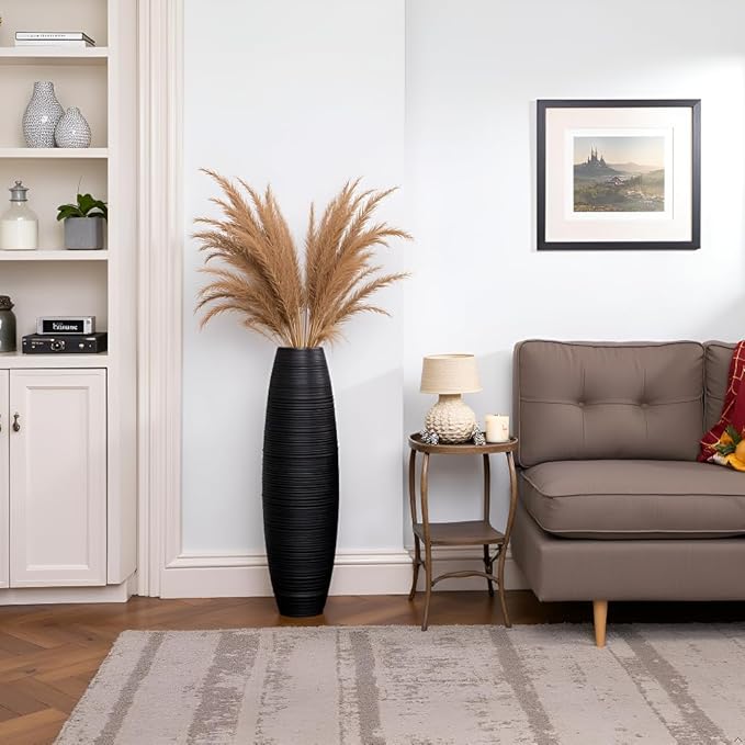 Tall Floor Vase, 27.5 inches (70cm, 2.3FT) Floor Vase Sturdy, Luxury, Textured for Decorative Branches Dried Flowers, Tall Vases for Rustic Living Room, Home Decor, Resin Black Vases