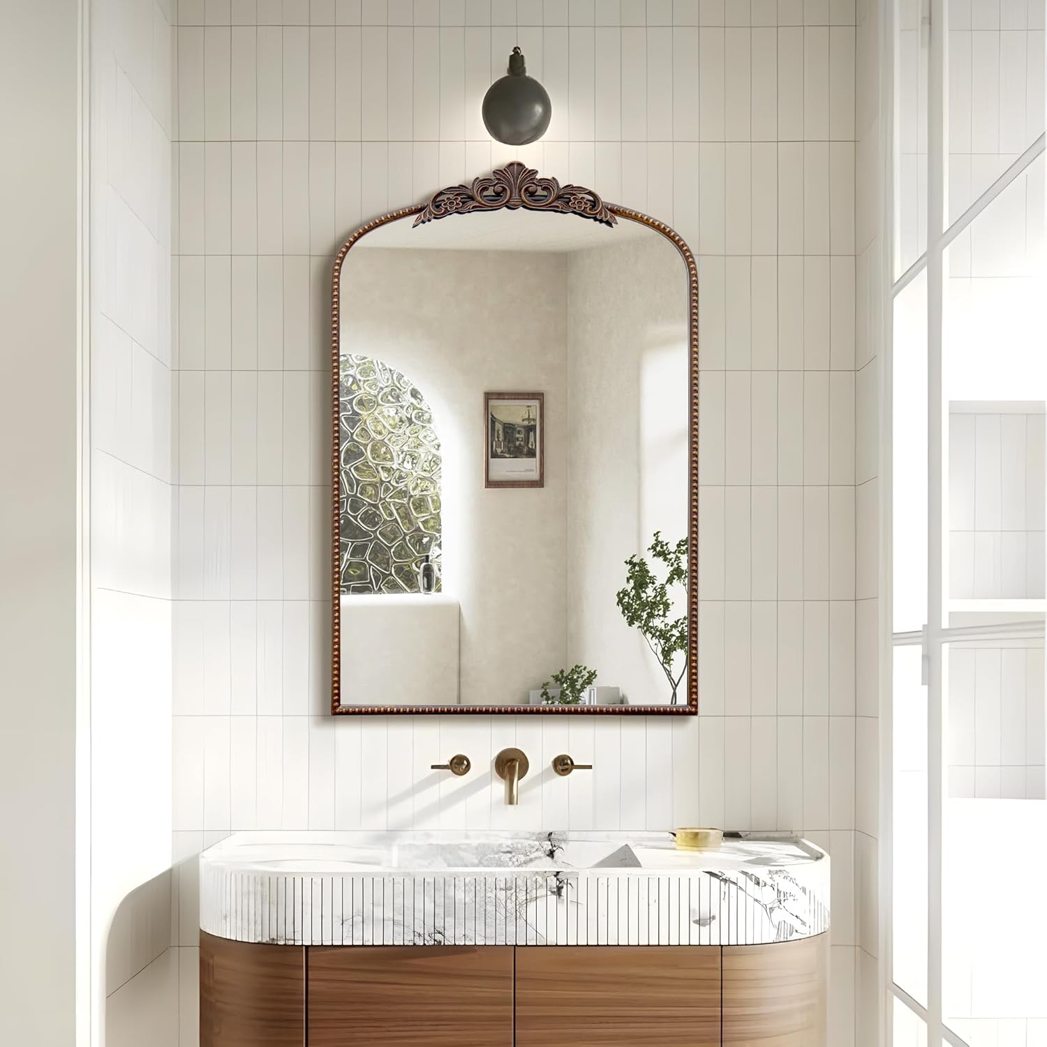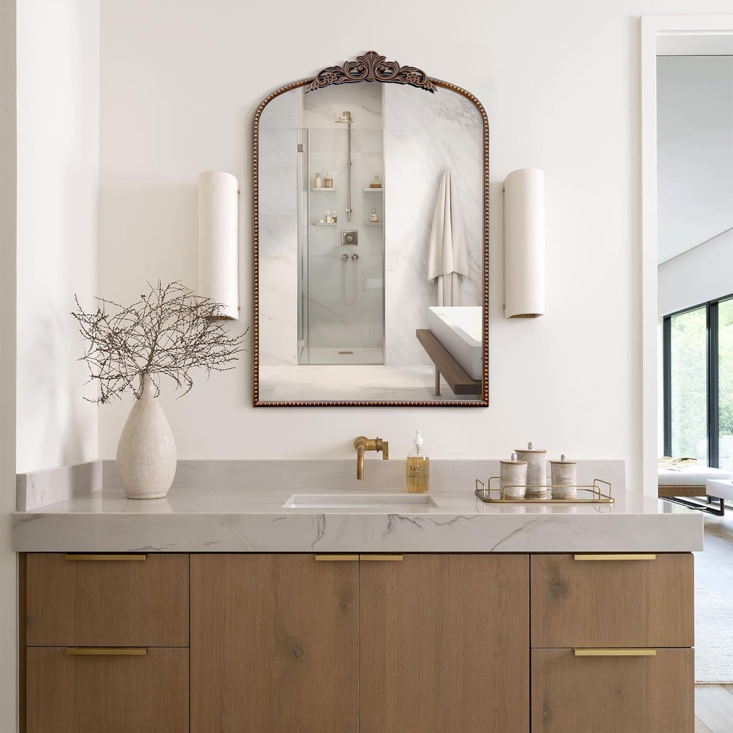 Micasso Traditional Ornate Bronze Mirror: 36" x 24" French Baroque Antique Mirror - Decorative Vintage Arched Mirrors for Wall/Bathroom/Entryway/Hallway - Home Decor for Living Room