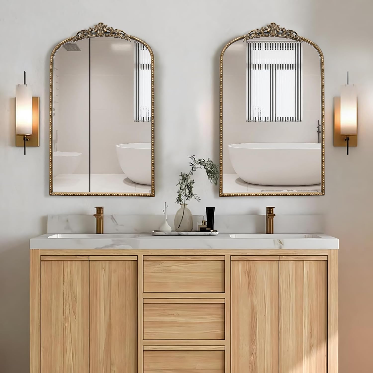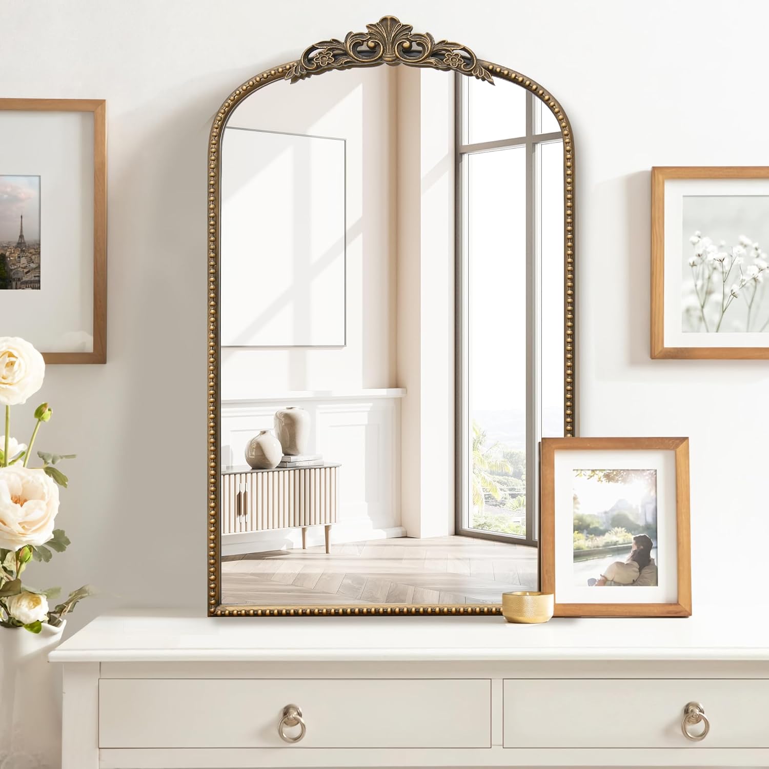 Micasso Vintage Wall Gold Mirror: 31"x 19" French Baroque Antique Mirror - Traditional Ornate Decorative Arched Mirrors for Wall/Bathroom/Entryway/Fireplace/Hallway - Home Decor for Living Room
