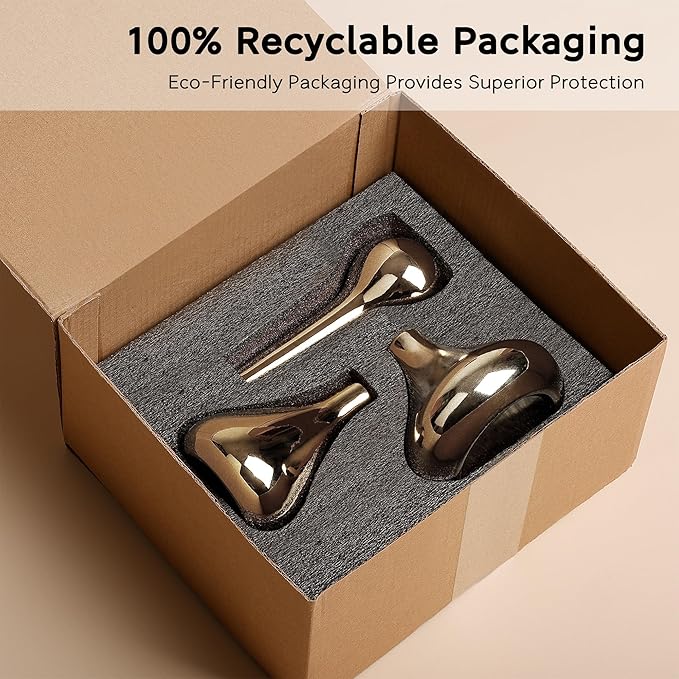 - The Perfect Gift: Get a set of our brass metallic vase set for yourself or as a housewarming gift for your family and friends! Surprise them with these beautiful silhouette vases packed in eco-friendly pearl cotton designed for safe transport. Plus, no messy styrofoam to get everywhere!