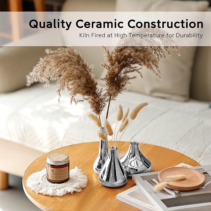 - Premium Quality: These modern vases for home decor are made entirely out of ceramic, a durable and thick material that will stand the test of time. The vases are kiln-fired at high temperatures to eliminate impurities and smooth the radiant reflective surface. Use them as Christmas vases or for any holiday decoration!