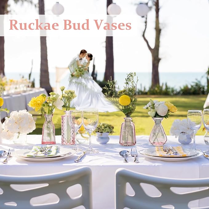 - Elegant Vintage Style: Add timeless beauty to any space with our RUCKACE Pink Flower Bud Vases.These assorted mini vases showcase a delicate vintage design with charming etched details,perfect for settings from formal wedding centerpieces to casual home decor.Ideal as glass vases for centerpieces,each small flower vase adds a touch of elegance wherever you place it.