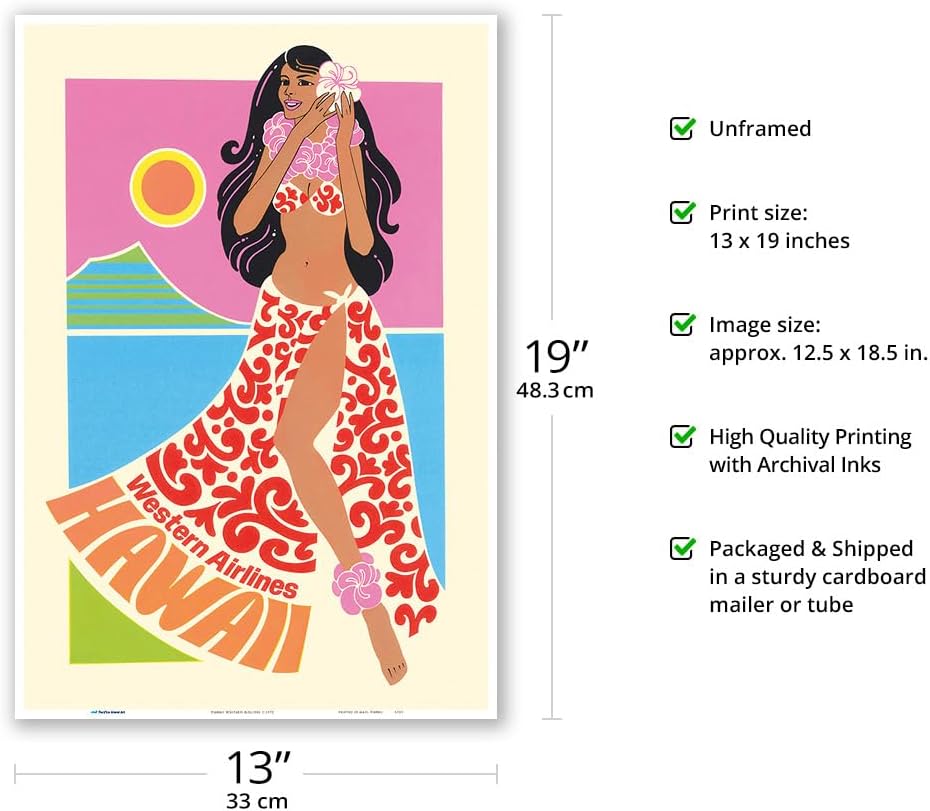 Hawaii - Western Airlines - Vintage Airline Travel Poster c.1970 - Master Art Print (Unframed) 13in x 19in