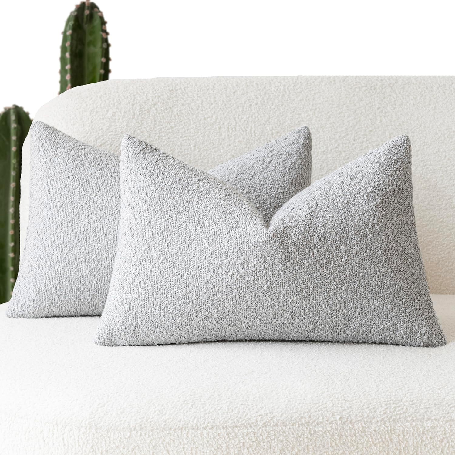 Foindtower Pack of 2 Textured Boucle Throw Pillow Covers Accent Solid Decorative Lumbar Pillow Cases Cozy Woven Couch Cushion Case for Sofa Bedroom Living Room Home Decor, 12 x 20 Inch,Light Grey