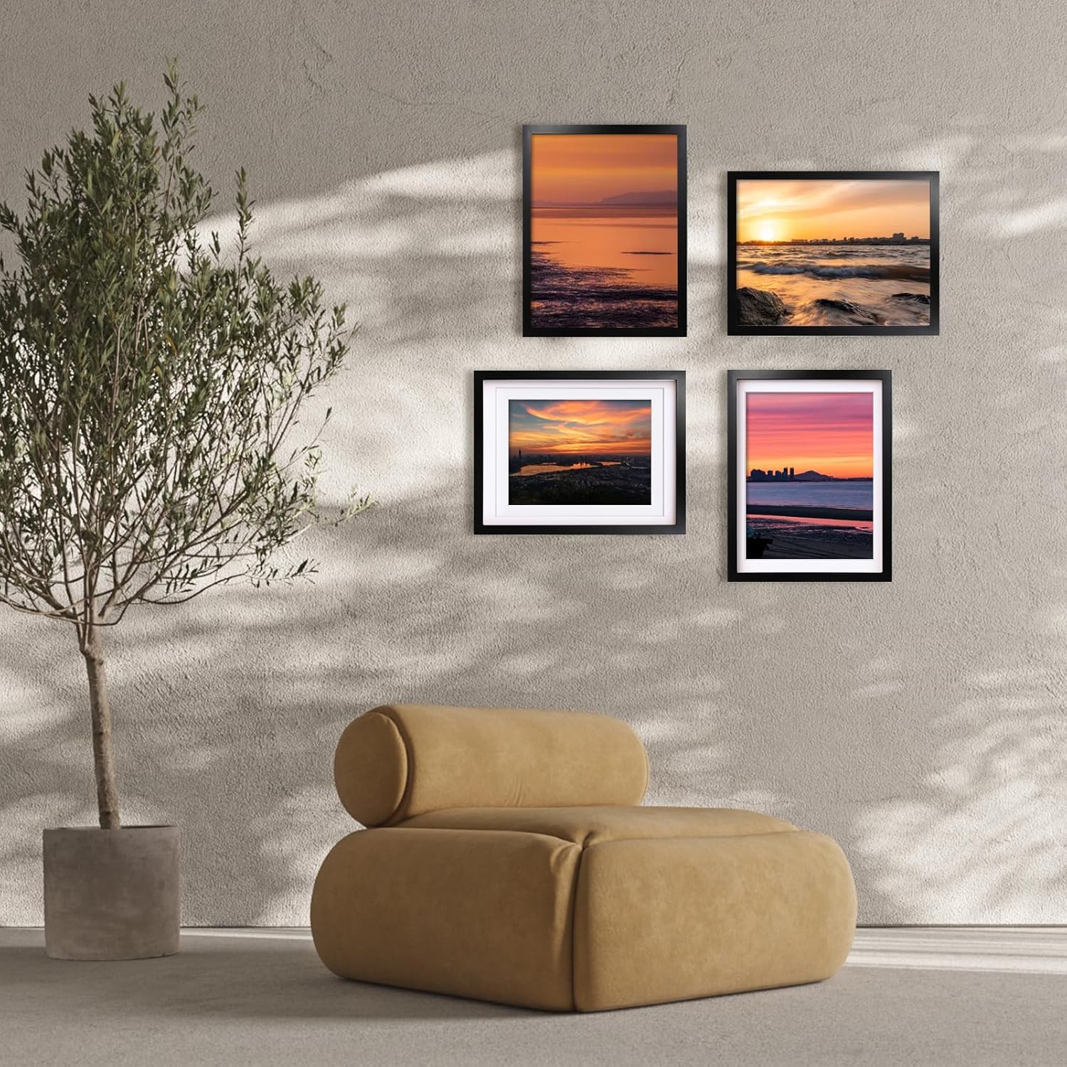 Egofine 12x16 Picture Frames Set of 4, Made of Solid Wood Covered by Plexiglass 9x12 and 11x14 with Mat or 12x16 without Mat, for Wall Mounting Photo Frame Black