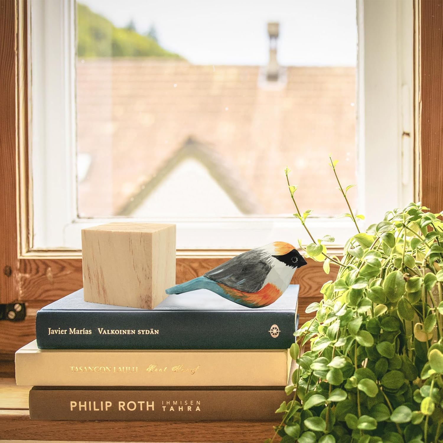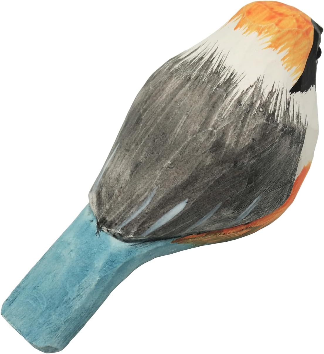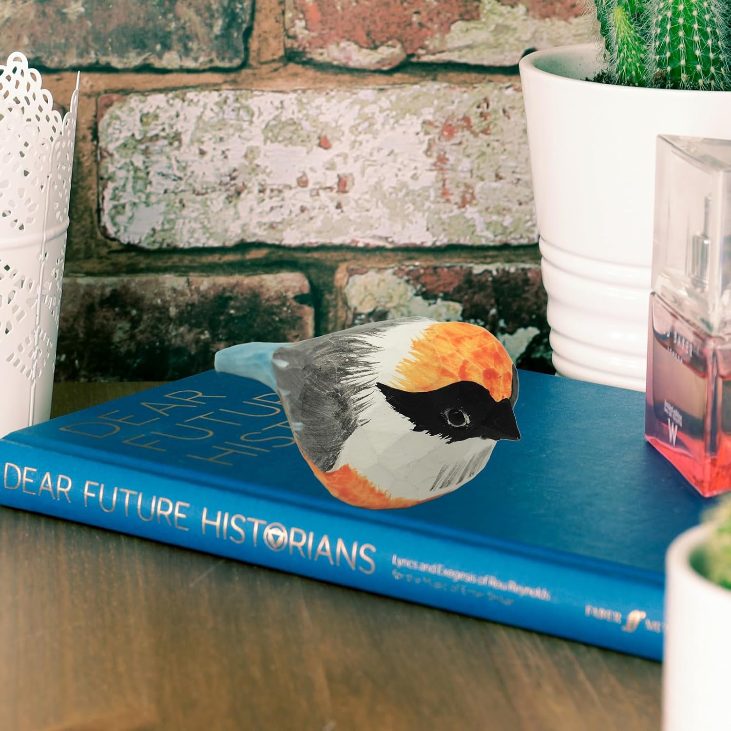 DIYOMR Hand Carved Wooden Bird Sculpture, Art Animal Wood Block, Vivid Bird Statue for Gift, Home Table Ornament Decor (Red-headed Tit)