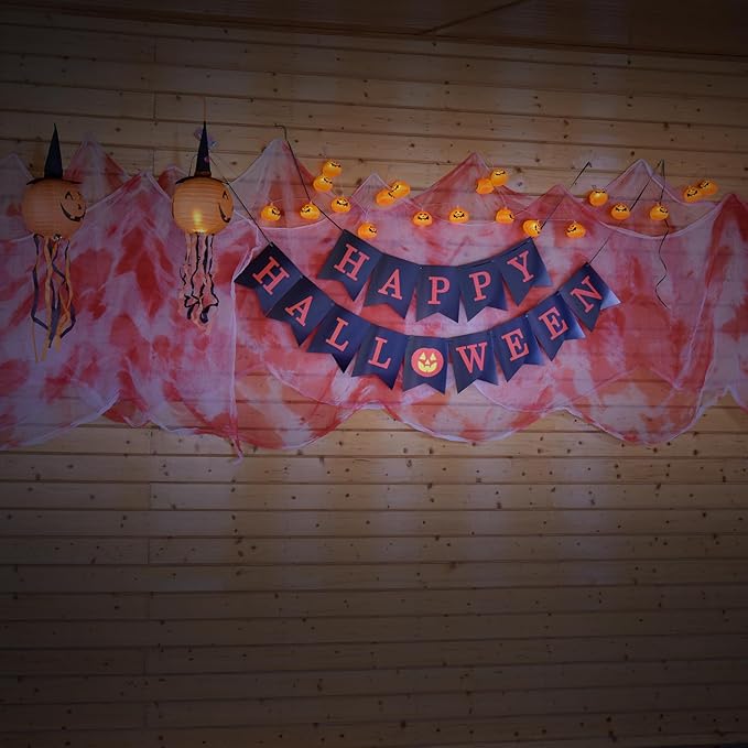 - 👻CREATIVITY BEYOND IMAGINATION: You can pair it with some spider or other decorations, or use scissors to cut and tear holes in the cloth. Then, cut it into strips and hang them from your light fixtures to create a truly eerie lighting effect to create your own horror scene.