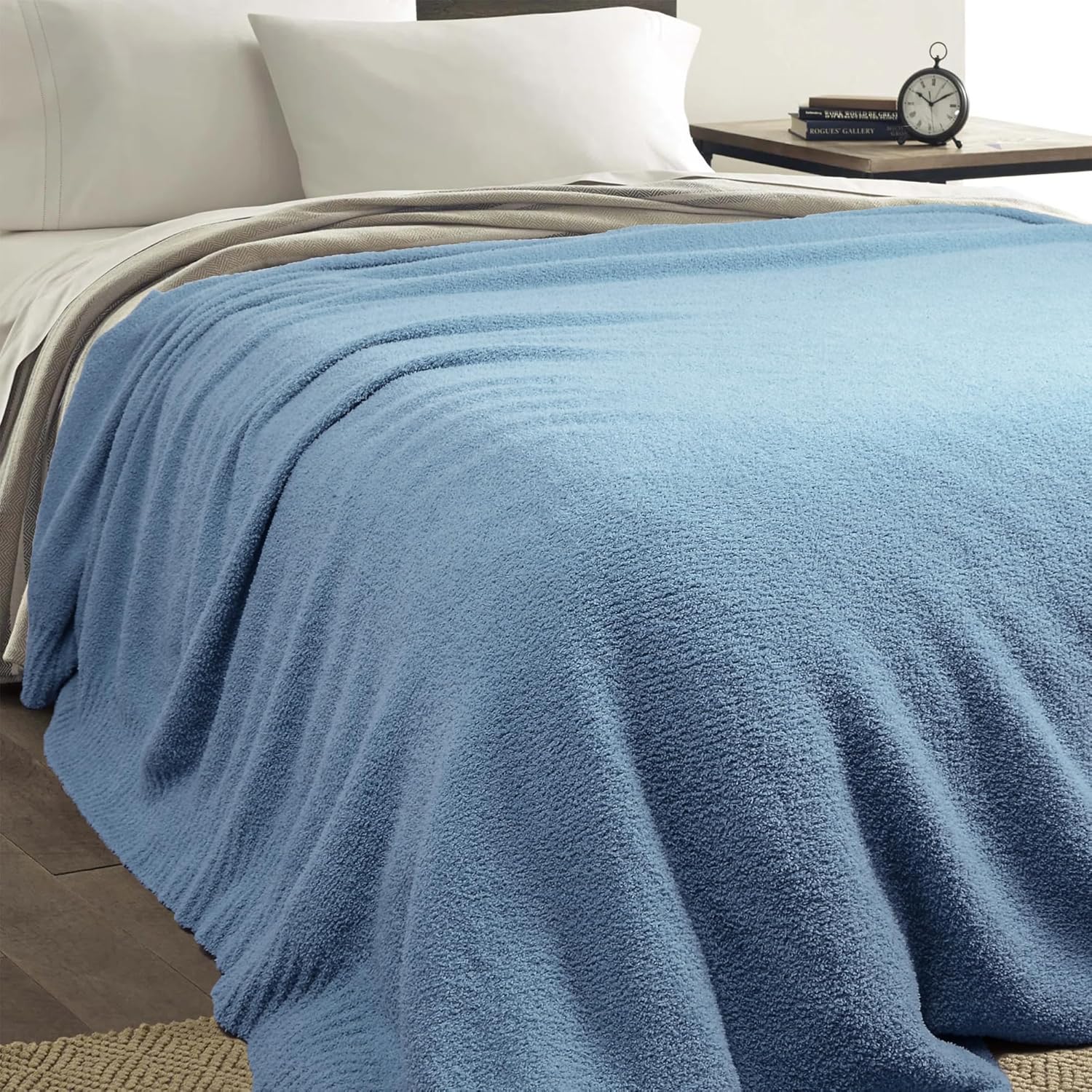 - Soft Queen Blanket: The soft queen blanket features a warm dusty blue color and ribbed detailing at edges, combining elegance and comfort in one package.