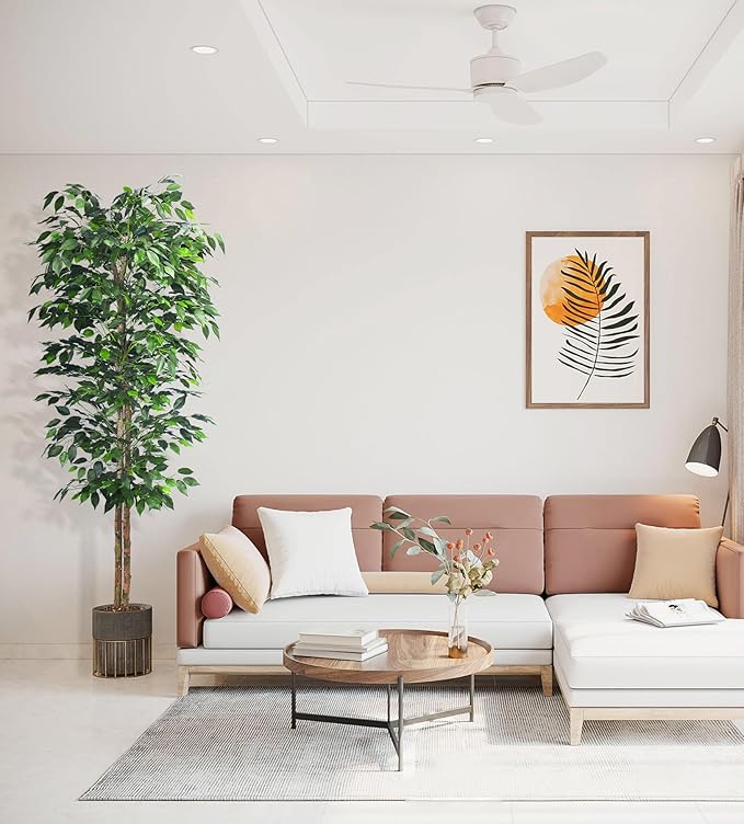 - 【Refine Home&Garden Decor】Unlike the delicate ficus tree, this artificial ficus tree is verdant and deep green with individual leaves on the sturdy trunk. These gorgeous greenery artificial plant displays instantly warm up any home or office and give it a cozy, lived-in feeling. If you look around your space and feel like something is missing, it might just be a beautiful fake ficus that you need.