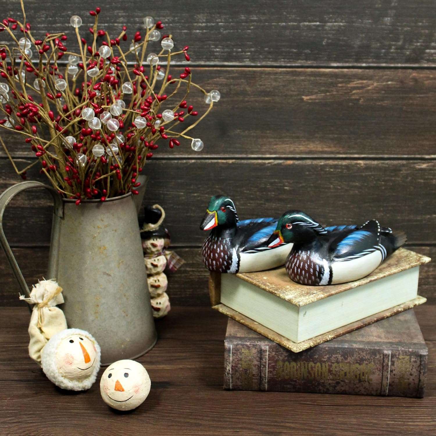 CVHOMEDECO. Primitives Hand Engraving and Painted Wood Wild Ducks Rustic Figurines Mallards Decorative Accent, Set of 2