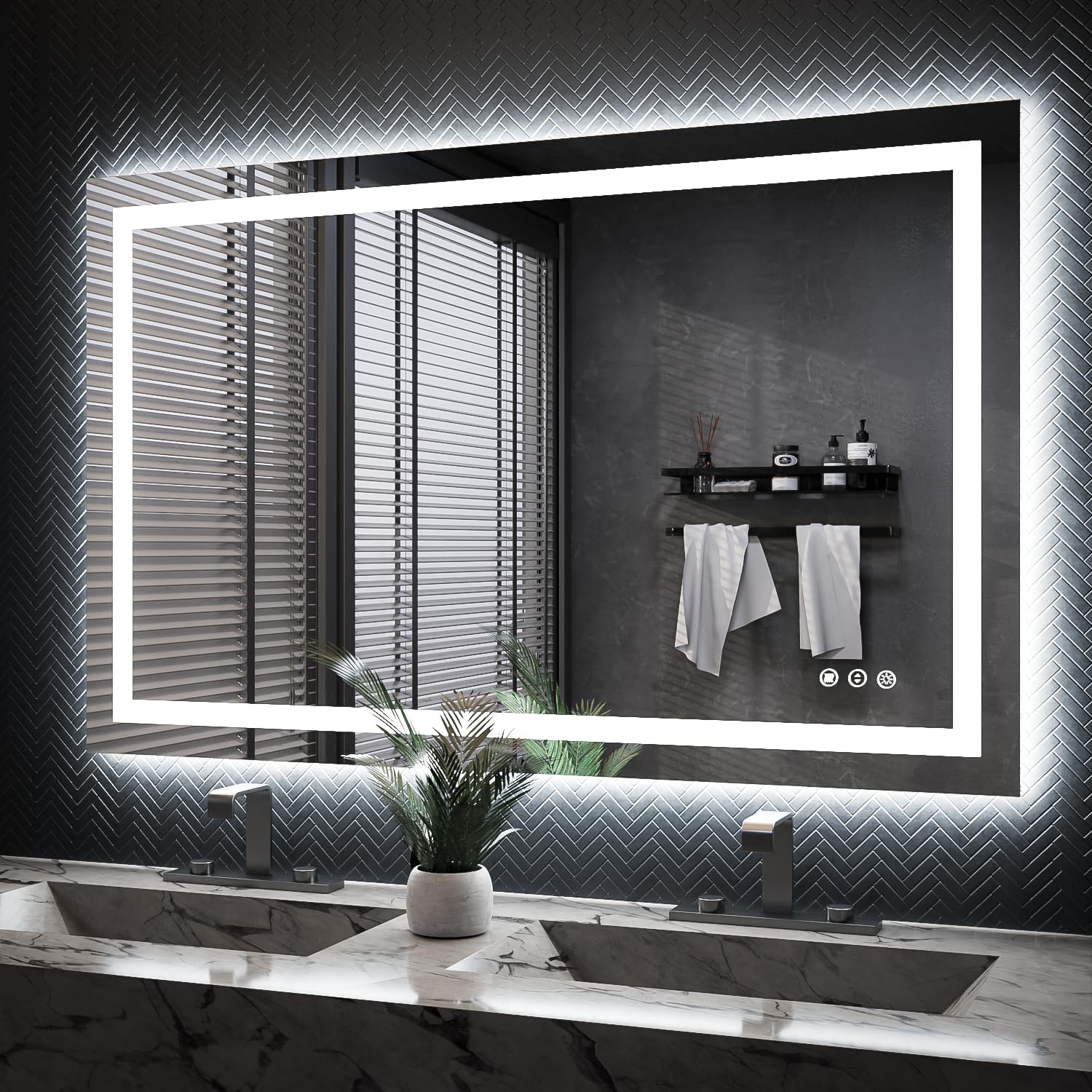 ISKM 48'' x 30'' LED Mirror for Bathroom Lighted Vanity Mirror for Wall Front Lights + Backlit LED Bathroom Mirror Anti-Fog Tempered Glass ETL Listed