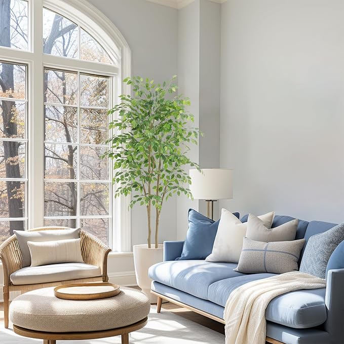 - 【Realistic Looking】This ficus tree artificial uses a technique that closely resembles the surface of real ficus tree leaves, making the surface of the leaves as smooth and glossy as a real ficus tree. It also features a full yet airy design, natural interfaces, and trunk, making the tree looks very realistic. It will be a beautiful sight in your home.