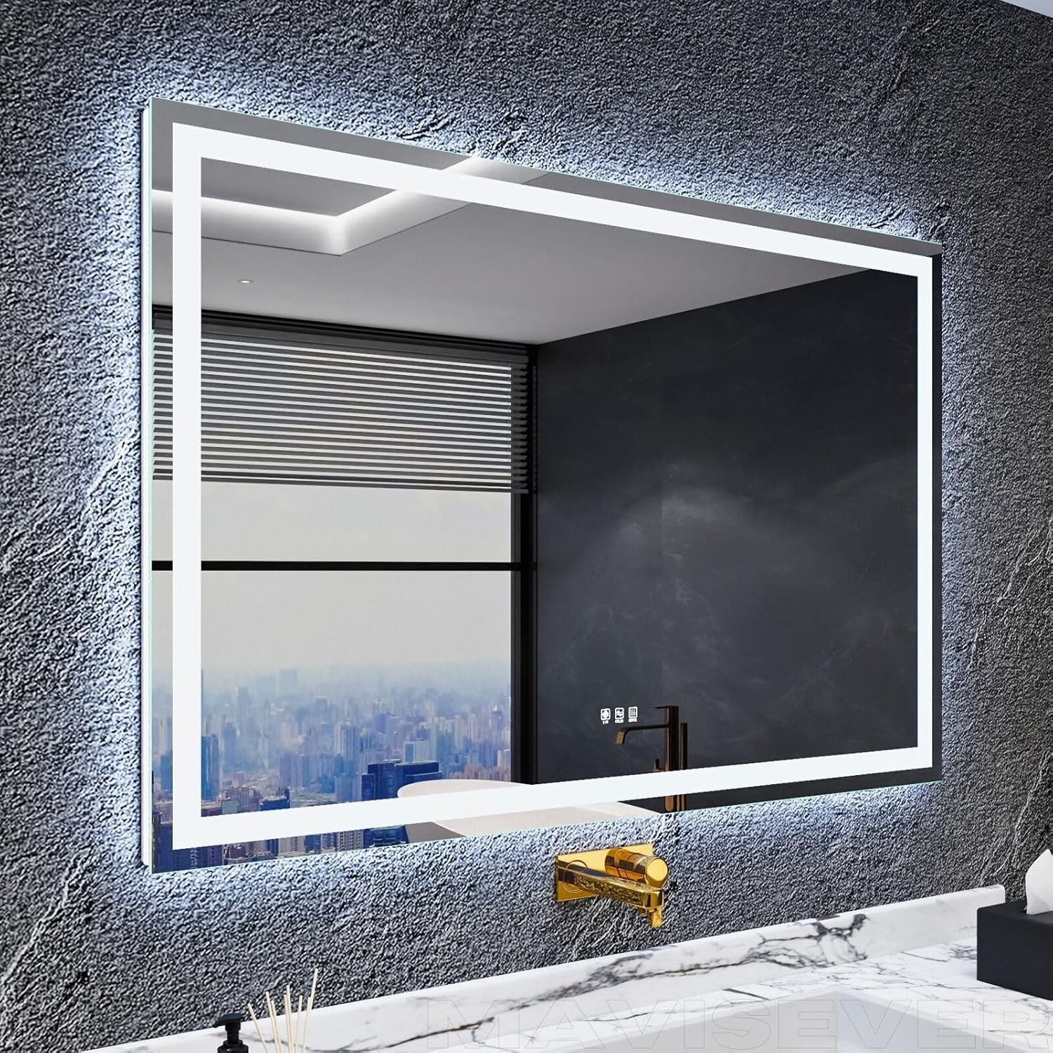 - 💡【Brighter & Clearer】MAVISEVER LED bathroom mirror - Double Illumination, Front&Back LED Strips - Ideal for makeup, Shaving, and Grooming - No Dark, No Shadow - CRI >95 - Energy-Efficient, 100000+ hours lifespan. Perfect vanity mirror with lights!