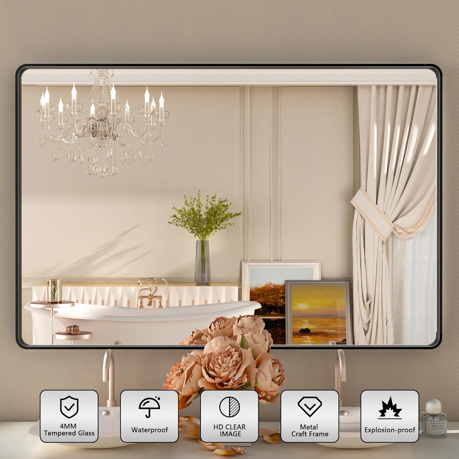 - H-D Glass, Super Clear: Our black bathroom vanity mirror adopts HD float glass technology to ensure 1:1 restoration of real image, no distortion, no shadows, super clear;