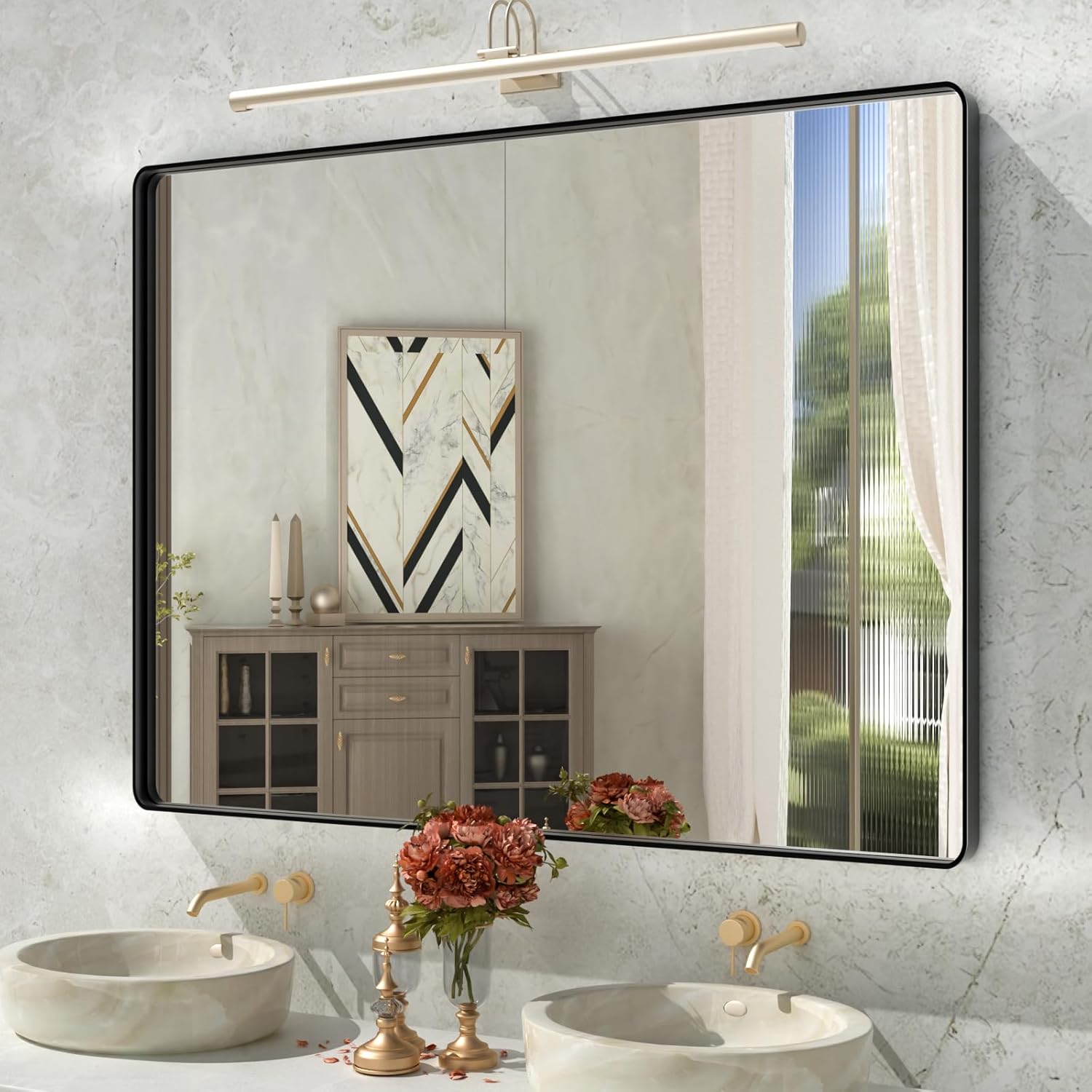 - H-D Glass, Super Clear: Our black bathroom vanity mirror adopts HD float glass technology to ensure 1:1 restoration of real image, no distortion, no shadows, super clear;