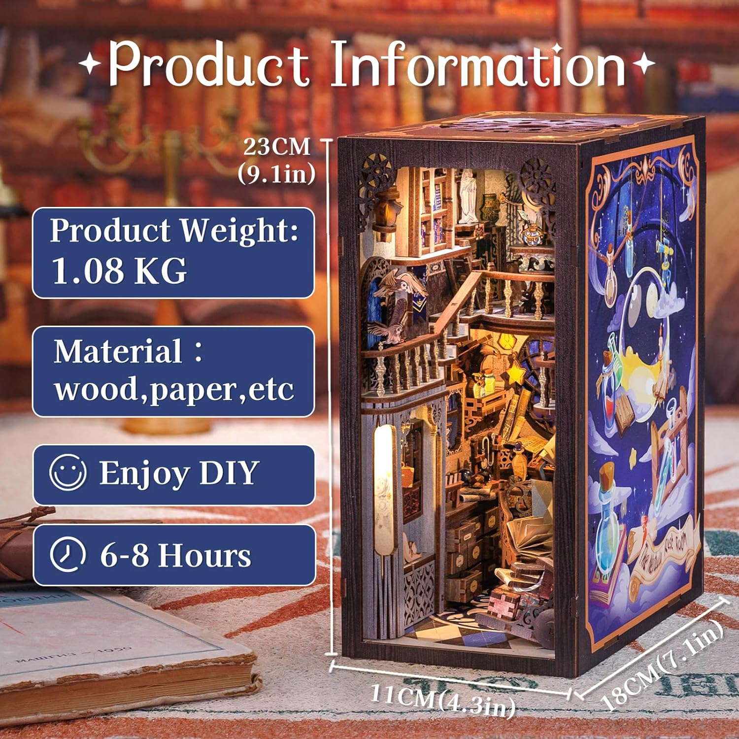 - [Fun DIY Experience] The book nook kit comes with parts that are required to assemble. Immerse yourself in the fun of assembling this booknook, and you will get a pleasure time and a wonderful book nook.