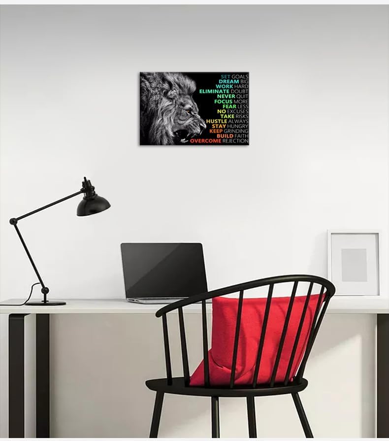 Inspirational Lion Wall Art Picture Positive Affirmation Quotes Office Wall Decor Motivational Painting Poster Print on Canvas Wall Artwork for Living Room Bedroom Framed Ready to Hang[12''W X 18''H]
