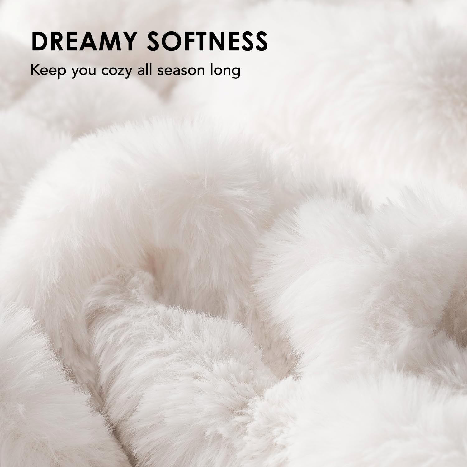 EVERGRACE Luxurious Soft Faux Rabbit Fur Throw Blanket, Cozy Fuzzy Plush Warm Throws for Couch Bed Sofa Chair Home Decor, Ruched Bubble Fluffy Blanket with Reversible Velvet, 50" x 60", Ivory White