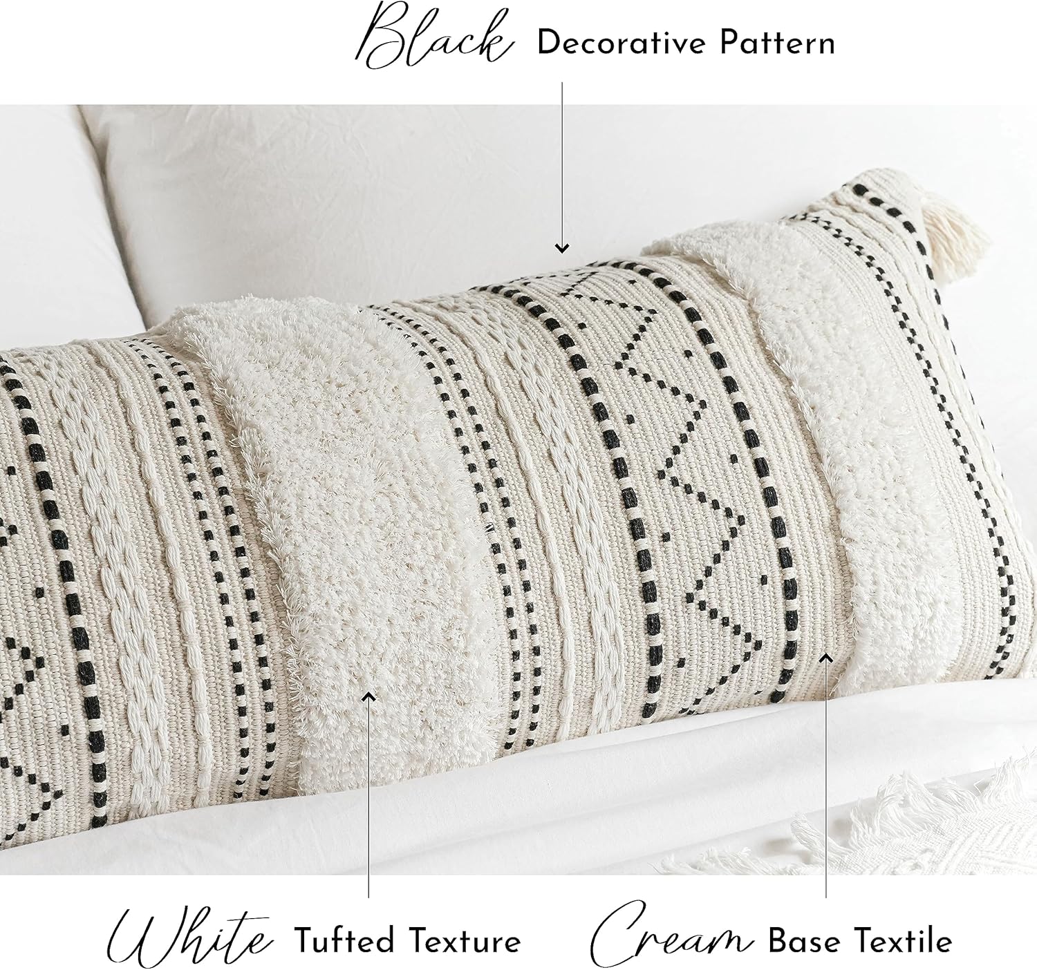BlissBlush Black Neutral Decorative Lumbar Throw Pillow Cover 14x36 Boho Long Cushion for Bed Accent Farmhouse Pillowcase for Bedroom Living Room Couch Sofa Home Décor (Cover ONLY, Pack of 1)