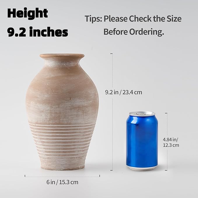 - Living Room Decor -The terracotta vase measures 9.2" height and 6" width. Perfect for fresh or dried flowers. Effortlessly elevate the aesthetics of any room -be it your living room, kitchen, bedroom,bathroom, or office-with our product.