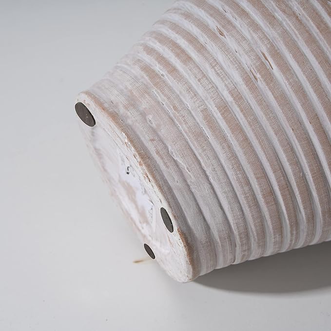 LUKA Ceramic Rustic Farmhouse Vase, 9.2 inch Whitewashed Terracotta Vase, Pottery Decorative Flower Vases,Clay Decorative Vases for Home Decor, Table, Living Room, Shelf, Mantel Decoration
