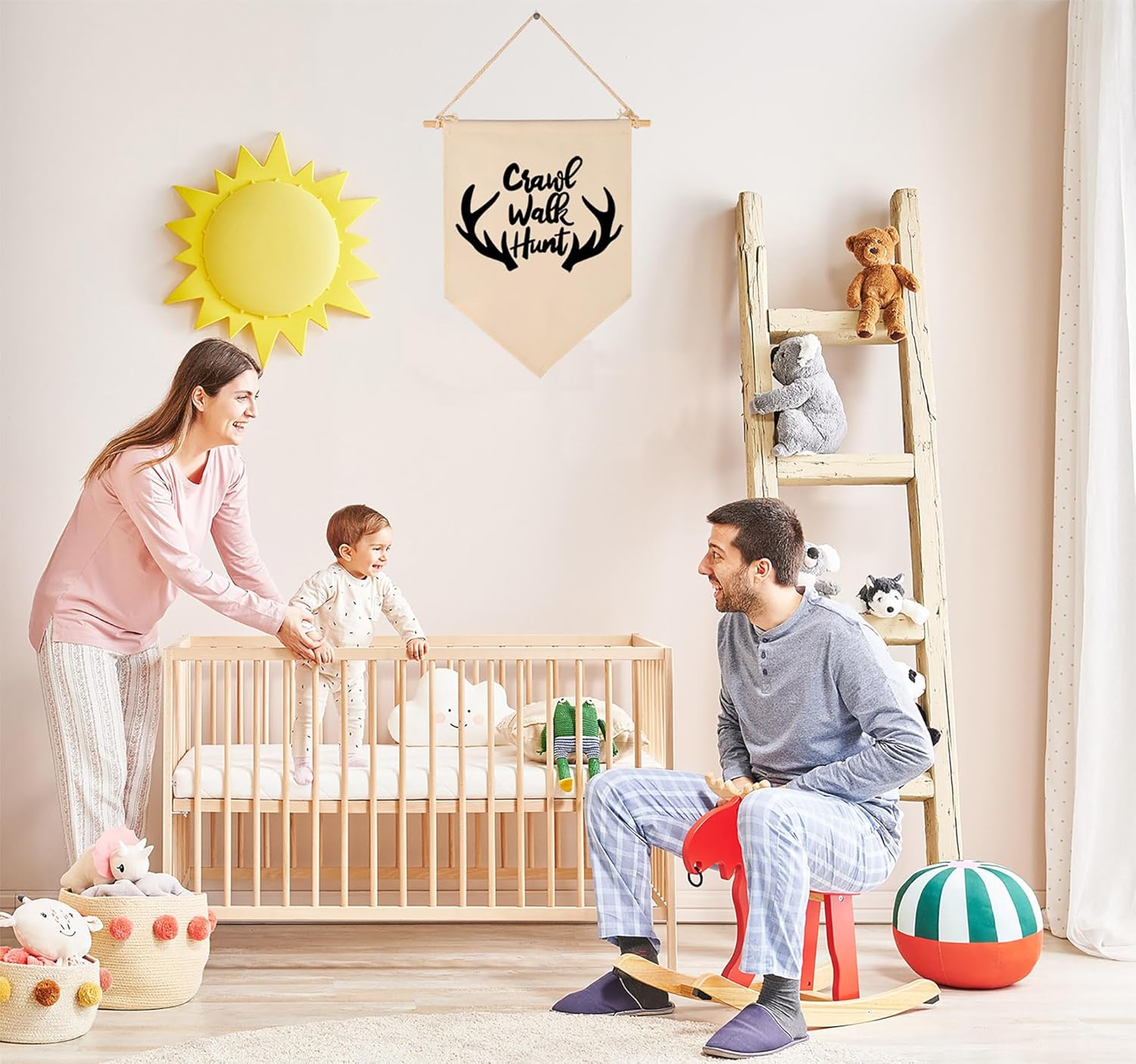 Crawl Walk Hunt,Woodland Deer-Flag Sign Gifts for Baby Newborn Boys Girls Kids-Banner Wall Decor Present for Nursery Bedroom Playroom Front Door-Baby Gift Shower-New Home Birthday Christmas Gift