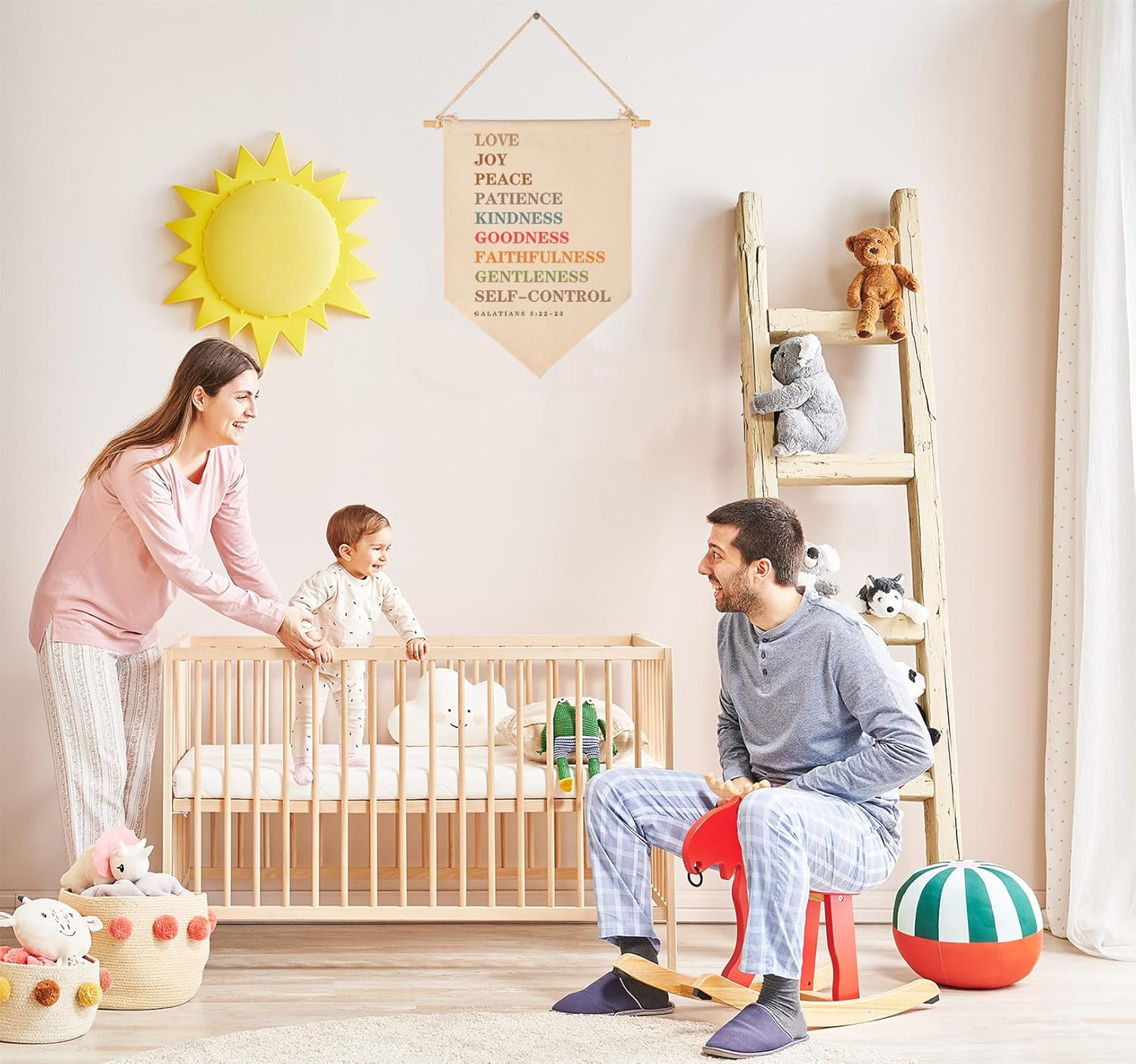 Love Joy Peace Patience-Bible Verse Decor-Scripture Flag Sign Gifts for Boys Girls Kids Baby Newborn -Banner Wall Art Gifts for Nursery Baby Room Playroom Bedroom Front Door-New Home Christmas Gift