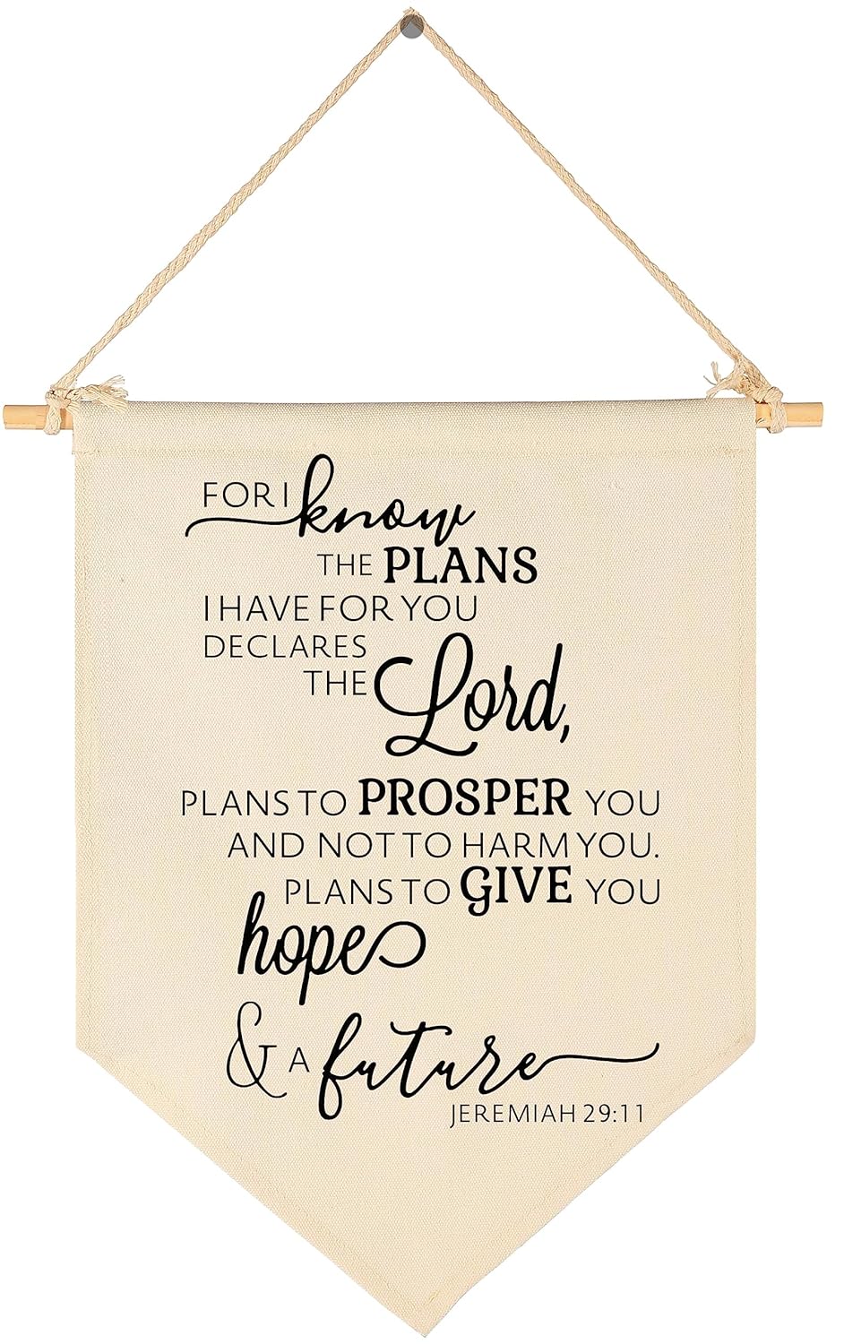 For I Know The Plans- Bible Verse Sign-Scripture Decor-flag Decor Gift For Baby Boys Girls Newborn Kids- Banner Wall Sign Gifts For Nursery Baby Room Playroom Bedroom Front Door
