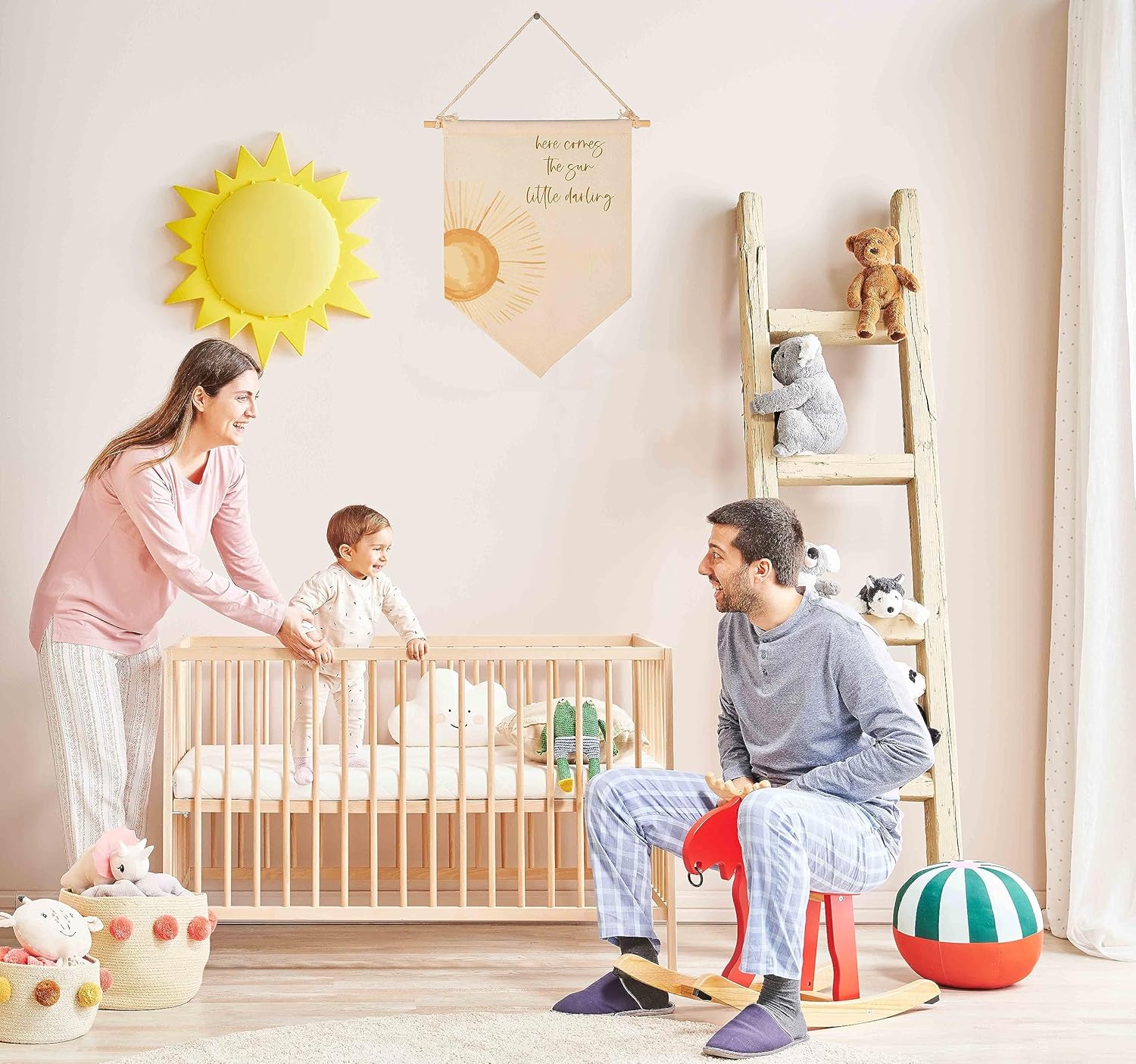 Here Comes the Sun,Little Darling-Sunshine Decor-Baby Flag Presents Shower-Flag Decor Gifts for Baby Boys Girls Kids-Banner Wall Sign Gifts for Nursery Kids Room Playroom Bedroom Front Door