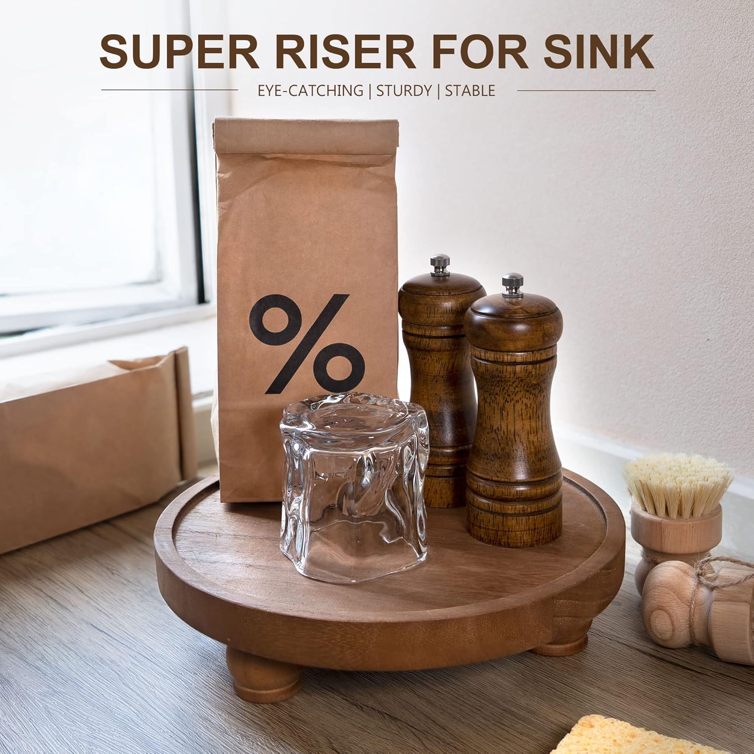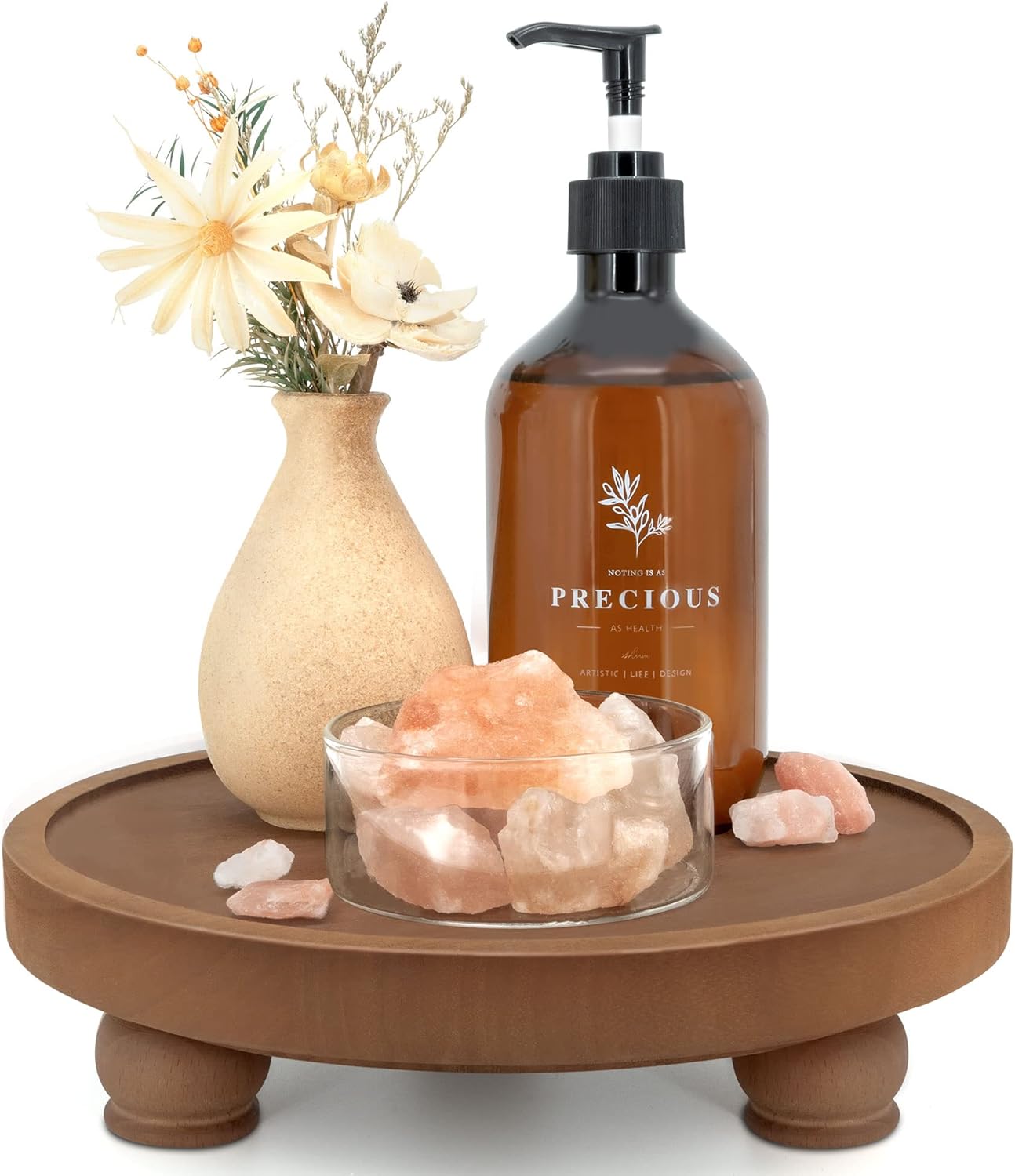 EOSAHR Farmhouse Wood Risers for Bathroom Decor - Decorative Pedestal Tray for Your Kitchen and Home - Rustic Round Waterproof Display Stand Organize for Your Soap, Plants, Jewelry, Perfume(Brown)